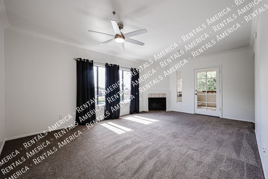 Freshly painted with new carpet, this rare 3-bedroom, 2-bath condo is nestled in the highly sought-after Las Brisas Gated Community. Located on the top floor, this unit boasts a spacious living room, dining area, and a large balcony with no front-facing neighbors. Enjoy added comfort with ceiling fans in all rooms and living room, a cozy fireplace, and both front and back private patios. Residents benefit from plenty of parking, including one covered parking space and ample visitor parking.