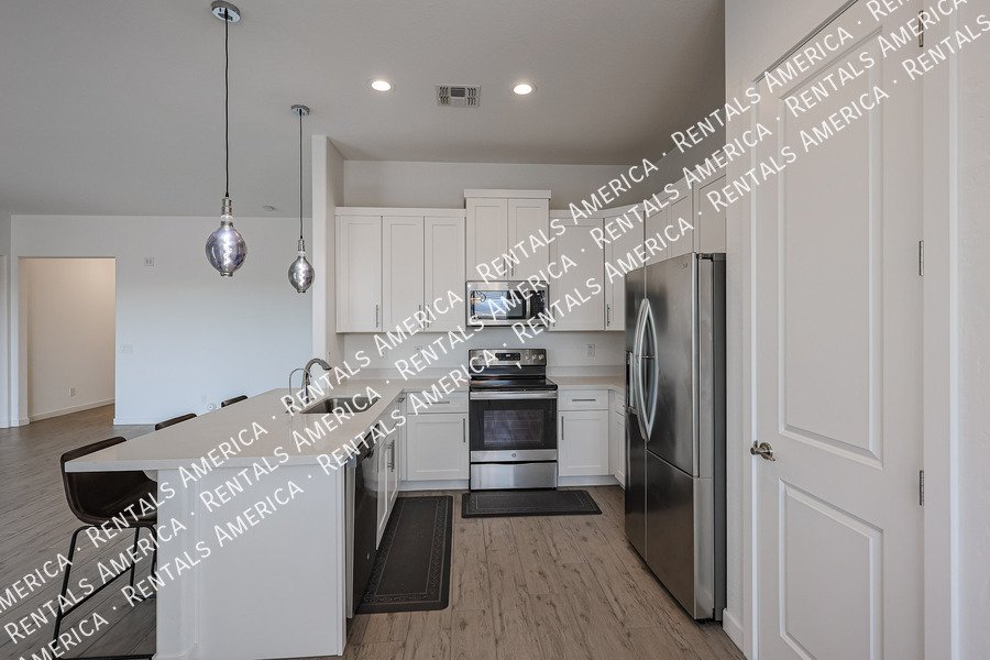 2 WEEKS FREE RENT WITH AN APPROVED APPLICATION! Plenty of room to roam. 3 bedrooms with an office. Spacious vinyl planked tile living room with an extended sliding glass door to check out your view. All appliances included. Stainless steel appliances in kitchen with white cabinets, white Corian countertops, updated pendant lighting, pantry, seating along the breakfast bar, and a breakfast nook to enjoy the view with your coffee. Master bathroom has double sinks and an extended walk-in shower. Master bedroom has large closet and overhead fan. Wood blinds and vinyl plank flooring throughout. 3 car garage. Water softener. Septic system. Pets considered with an approved application.