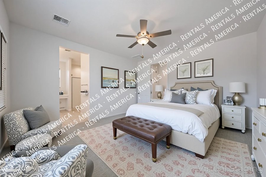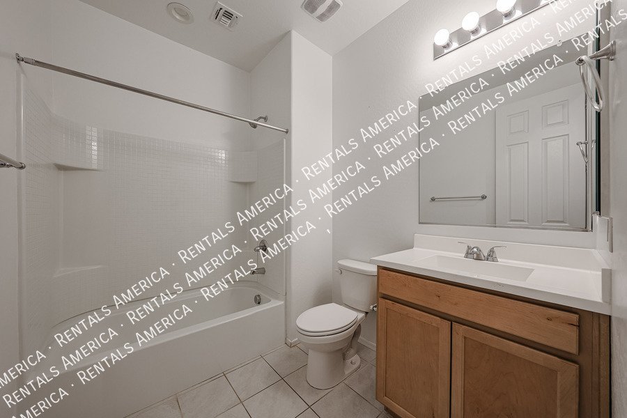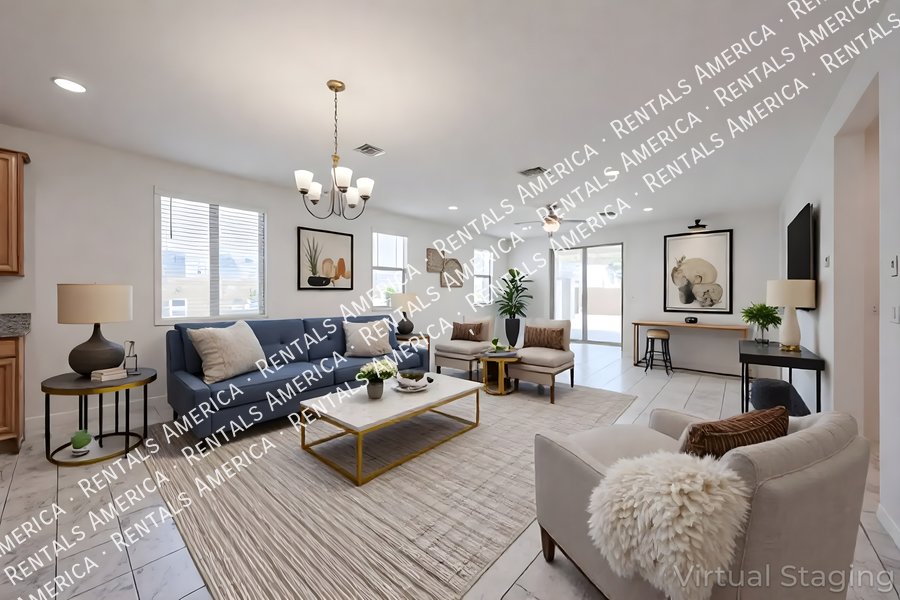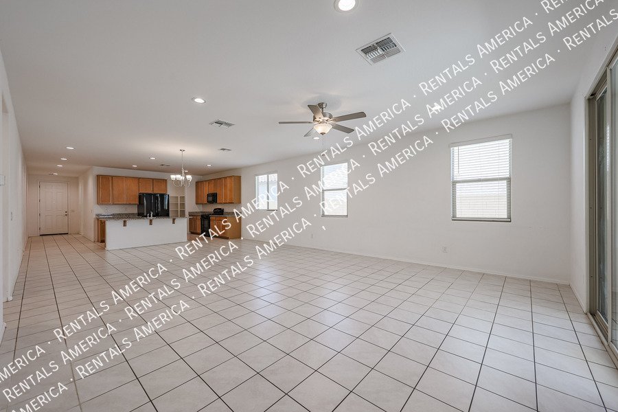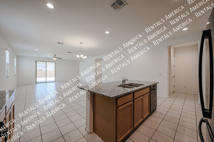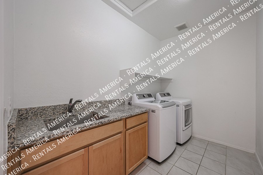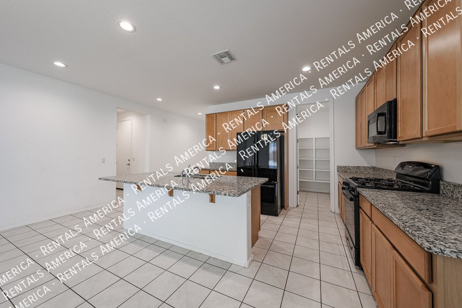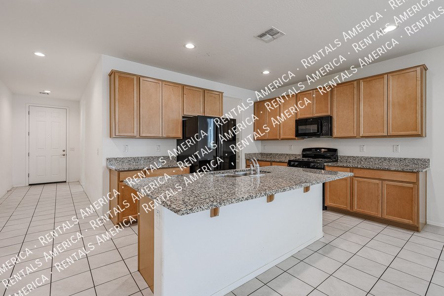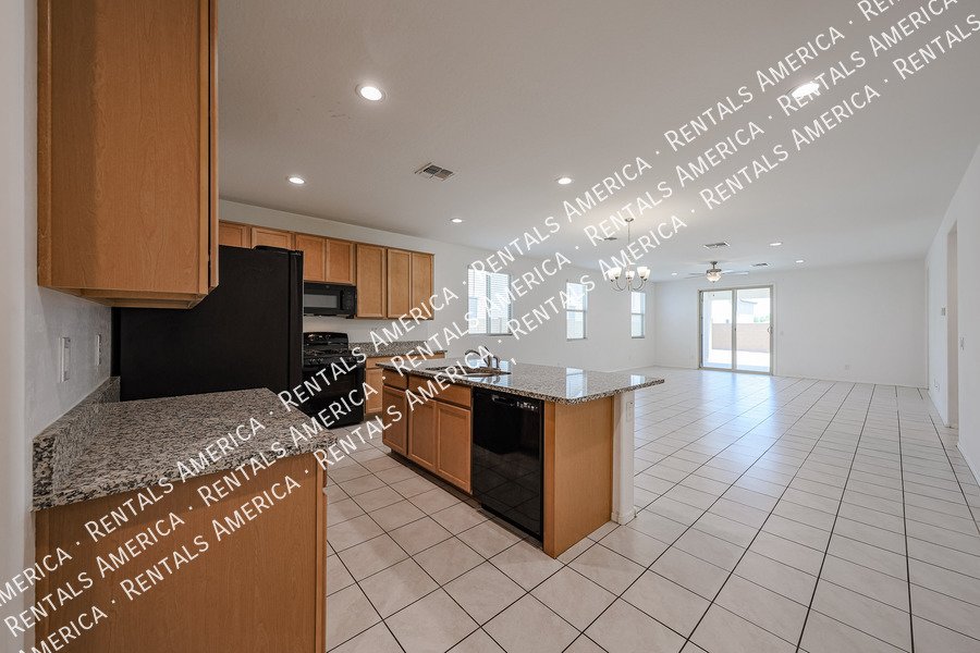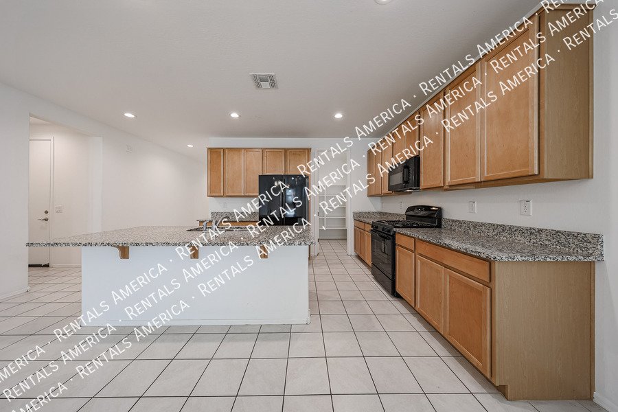 $500 OFF 1st Full Month's Rent if Move In by Nov 14th! Open to 6-Month Lease. Beautiful 5 BR / 3 Full BA in Tuscano Community, built in 2022. You will love this amazing open split layout. Kitchen features an oversized granite island w/ built-in sink & dishwasher, sleek black appliances, built-in microwave, gas stove, recessed lighting, and plenty of hardwood cabinets. Kitchen opens to large dining and family room with access to covered back patio. Suite includes large walk-in closet, double sink vanity, walk-in shower, linen closet, and private toilet room. Guest quarters and full bathroom just off entry. Large laundry room includes utility sink cabinets and washer & gas dryer. Lighted ceiling fans throughout. Tile in all livable areas and carpeted bedrooms. Please remove shoes, slipons provided while viewing the home.