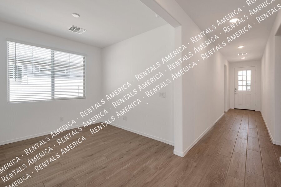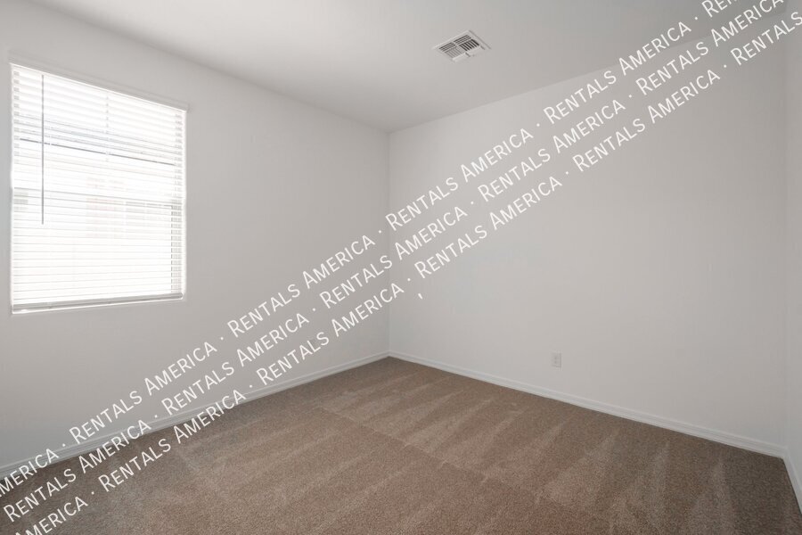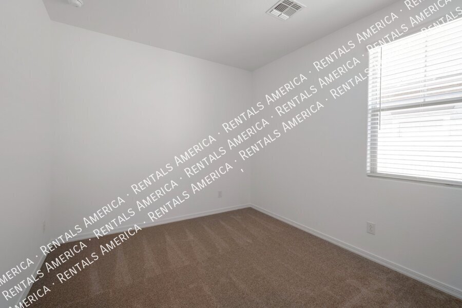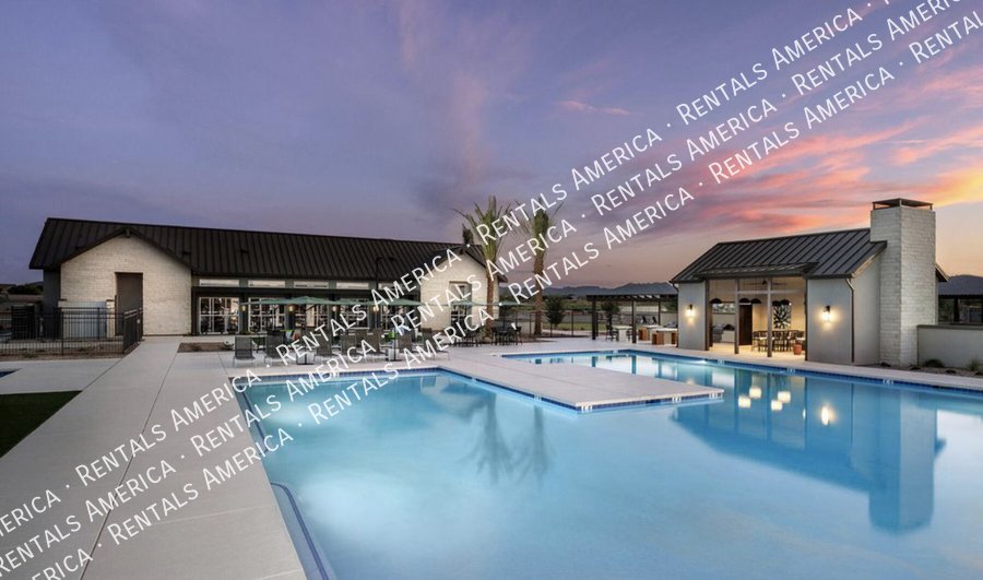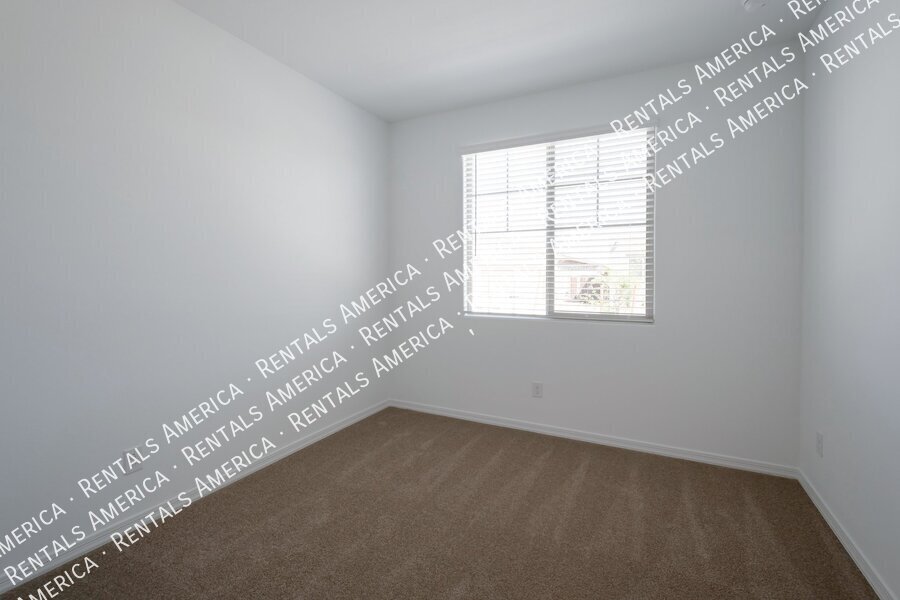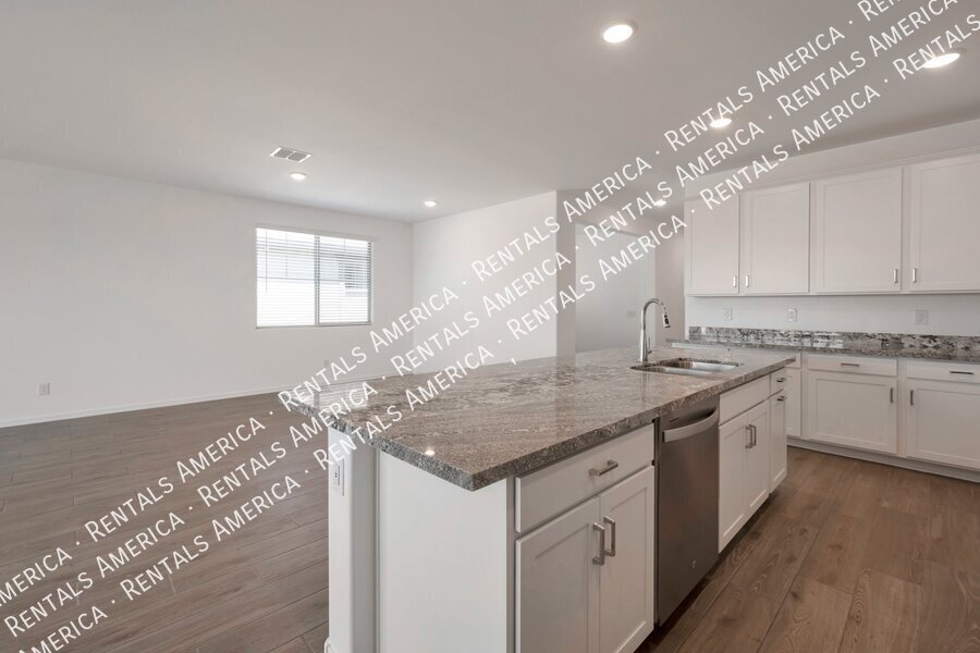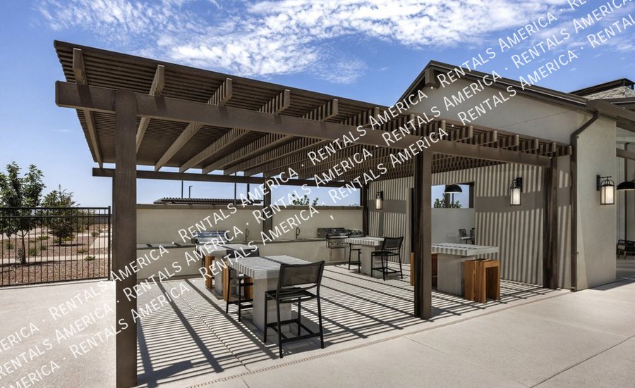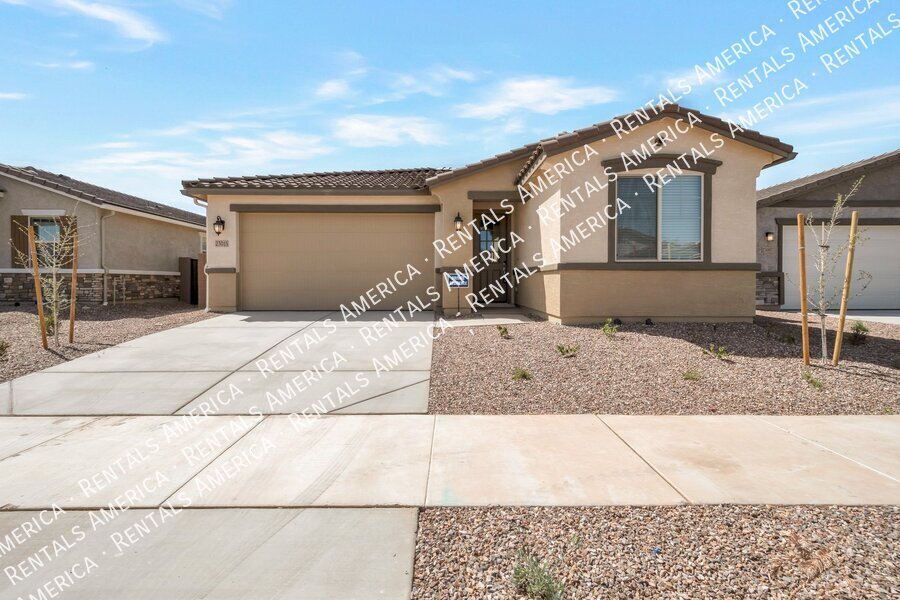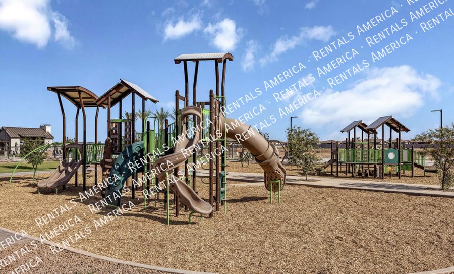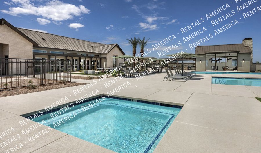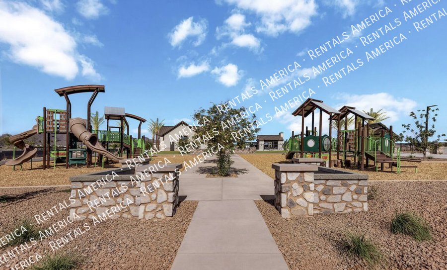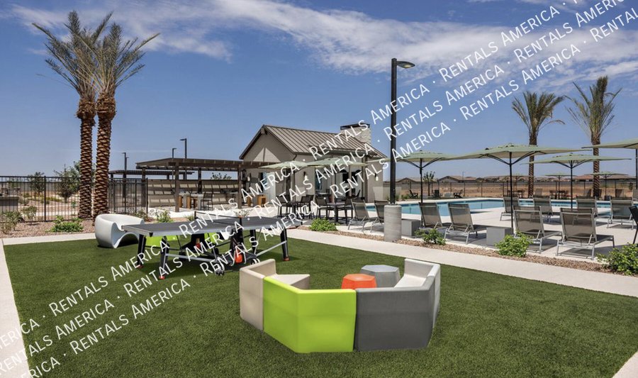 Such a great floorplan on a new home! The master bedroom is located in the back of the home with two secondary bedrooms in the front. One bedroom in the middle with it's own full bathroom. 3 full bathrooms total! Open floor plan with huge living room with an extended sliding glass door leading out to the covered patio and a gorgeous kitchen, complete with walnut laminate tile flooring. The kitchen has plenty of storage space with white cabinets, granite countertops, a walk-in pantry and a hooded range. All bedrooms have neutral colored carpet. The office/den is off of the front hallway. Includes all appliances! Rock in the front and the backyard for easily maintained landscaping. Close to schools and shopping. AMENITIES INCLUDES A RESORT-STYLE COMMUNITY POOL, FITNESS CENTER, SPORT COURTS AND A PLAYGROUND