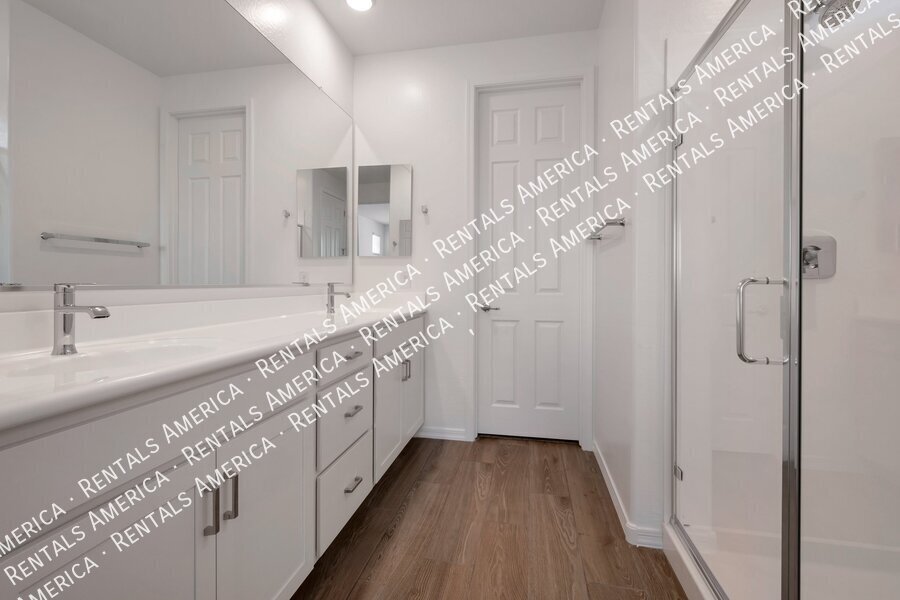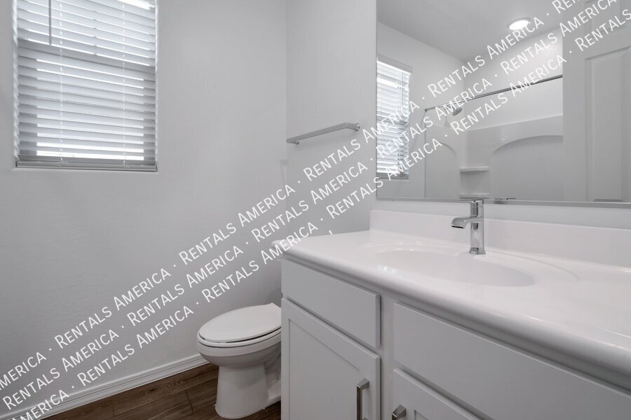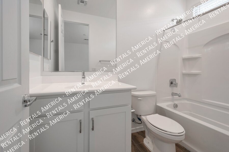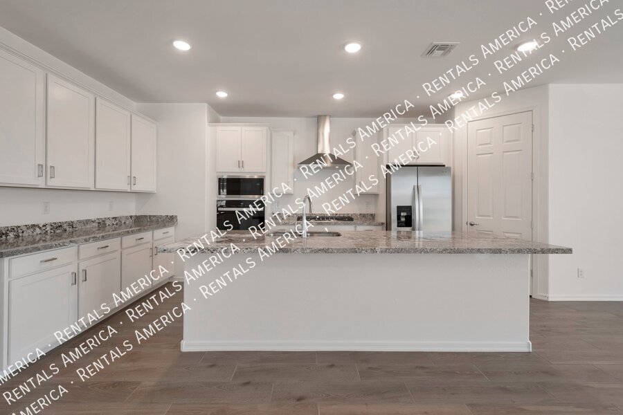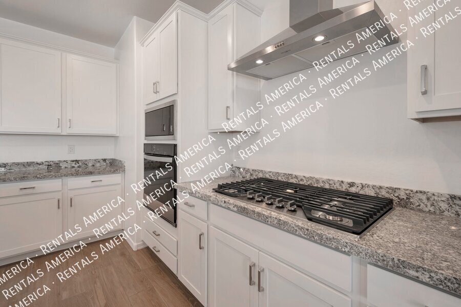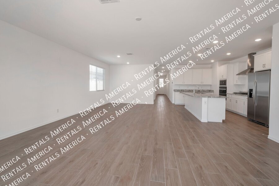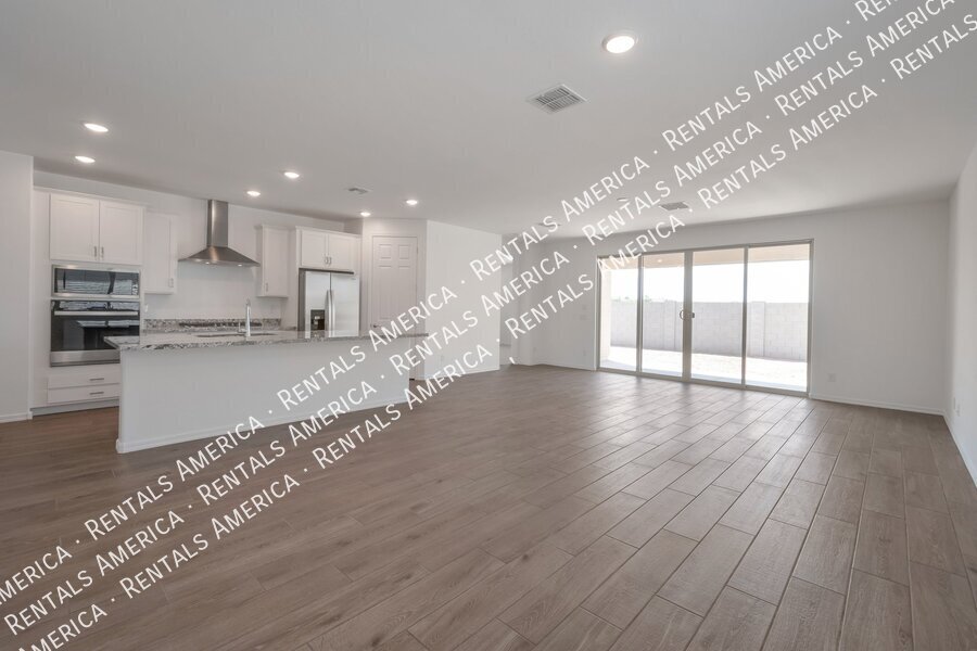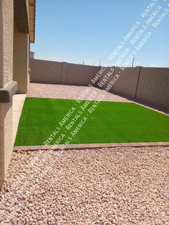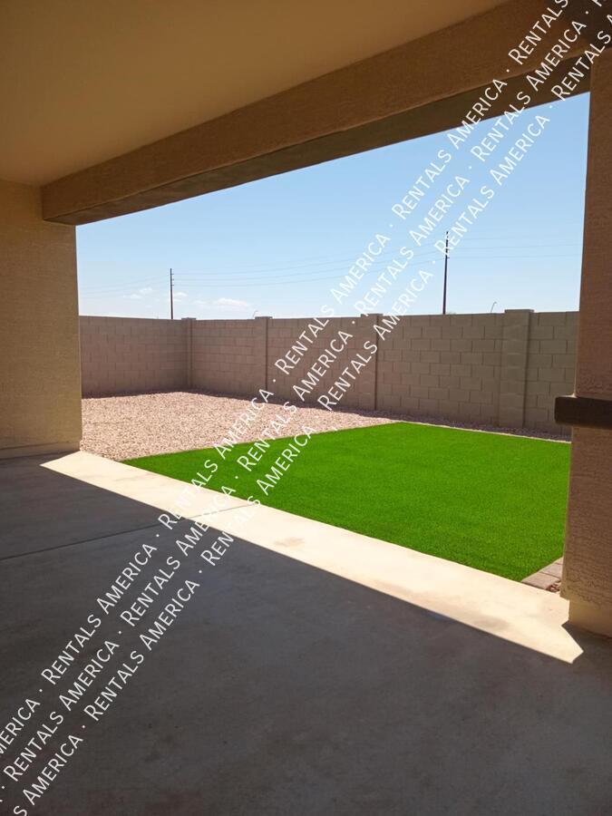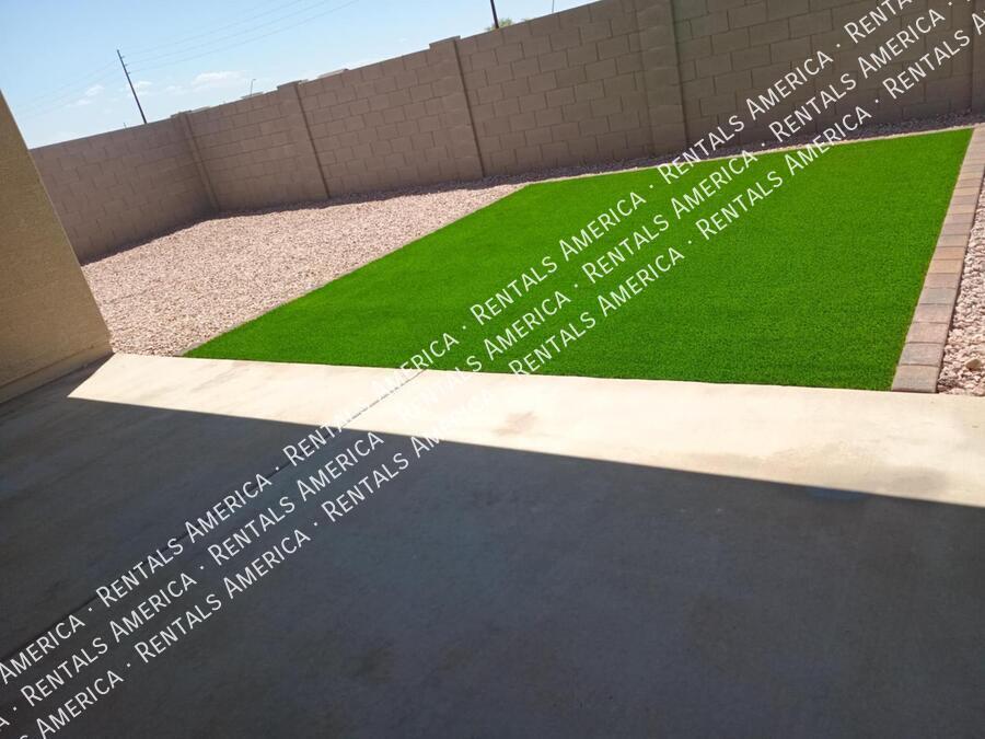 Such a great floorplan on a new home! The master bedroom is located in the back of the home with two secondary bedrooms in the front. One bedroom in the middle with it's own full bathroom. 3 full bathrooms total! Open floor plan with huge living room with an extended sliding glass door leading out to the covered patio and a gorgeous kitchen, complete with walnut laminate tile flooring. The kitchen has plenty of storage space with white cabinets, granite countertops, a walk-in pantry and a hooded range. All bedrooms have neutral colored carpet. The office/den is off of the front hallway. Includes all appliances! Rock in the front and the backyard for easily maintained landscaping. Close to schools and shopping. AMENITIES INCLUDES A RESORT-STYLE COMMUNITY POOL, FITNESS CENTER, SPORT COURTS AND A PLAYGROUND