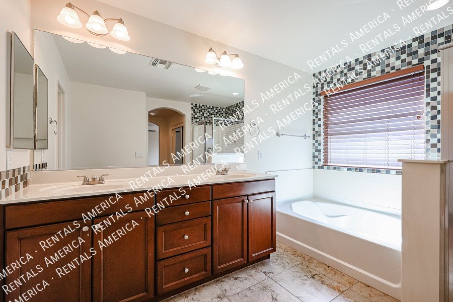 Come check out this beautiful spacious home located in the heart of Gilbert! This home has 5 bedrooms and 3 bathrooms, perfect for all your housing needs. Just minutes from freeway, restaurants, shopping & parks. Property offers a low-maintenance desert landscape with a lighted pergola & a covered front patio. Master suite has double sinks, glass enclosed shower and garden tub; His and Hers mirrored-door wardrobes. All major appliances are included.