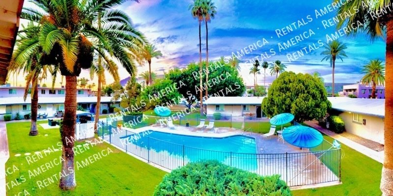This retro 1950's community offers a tropical oasis with a centralized swimming pool.