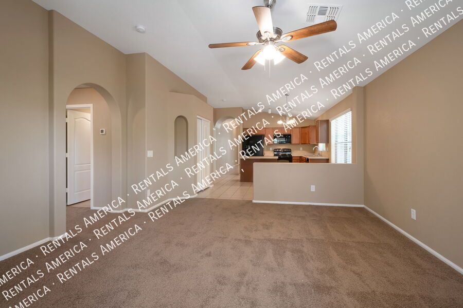This beautifully updated single-story home offers 4 spacious bedrooms, a formal living and dining area, a large family room, a kitchen with a cozy breakfast nook, 2 bathrooms, and a 2-car garage. The home features upgraded black appliances, maple cabinetry, raised bath vanities, cultured marble countertops, and elegant tile flooring throughout. Located in a highly desirable community, you'll enjoy access to fantastic amenities, including two community pools, multiple parks, playgrounds, scenic walking paths, and more. Conveniently close to the 202 Freeway, Mesa Gateway Airport, Top Golf, and a variety of dining and shopping options. Come see why this home is the perfect place for you to call home! 1 small pet only Please!