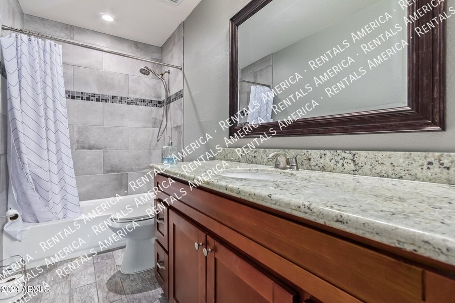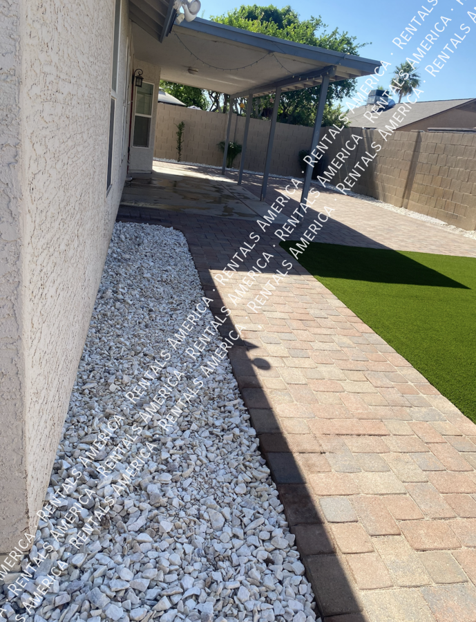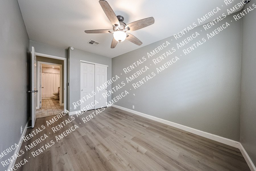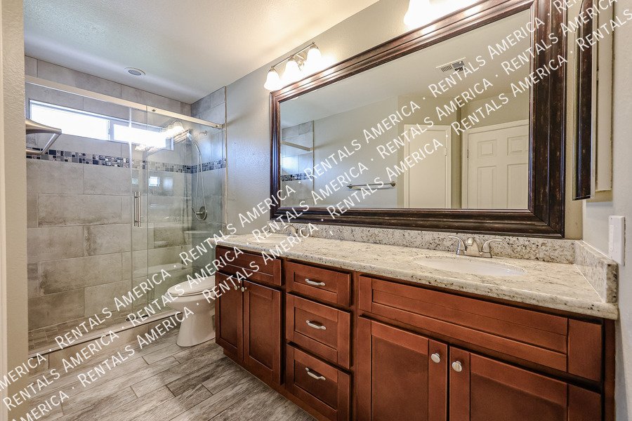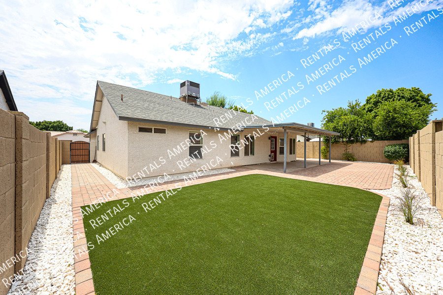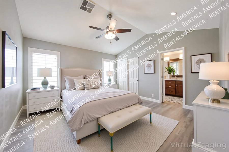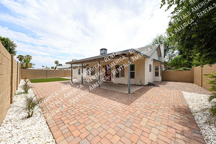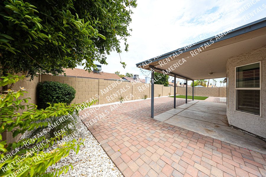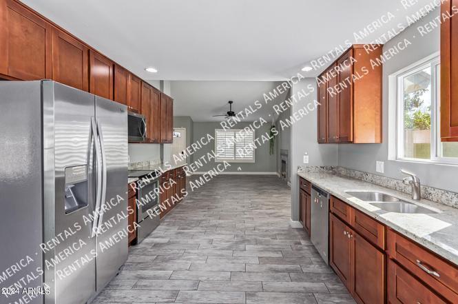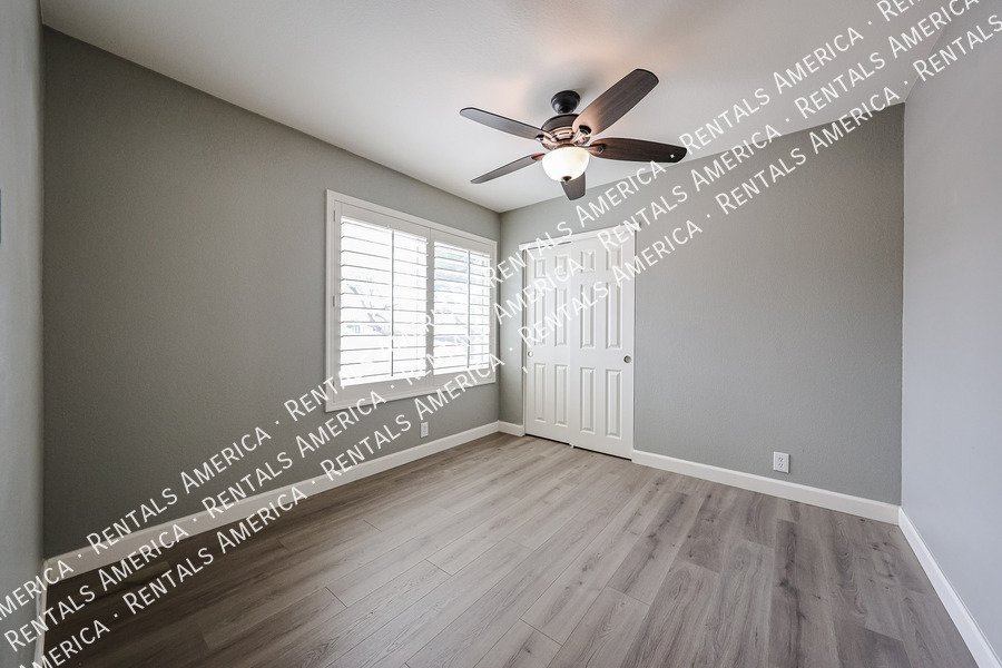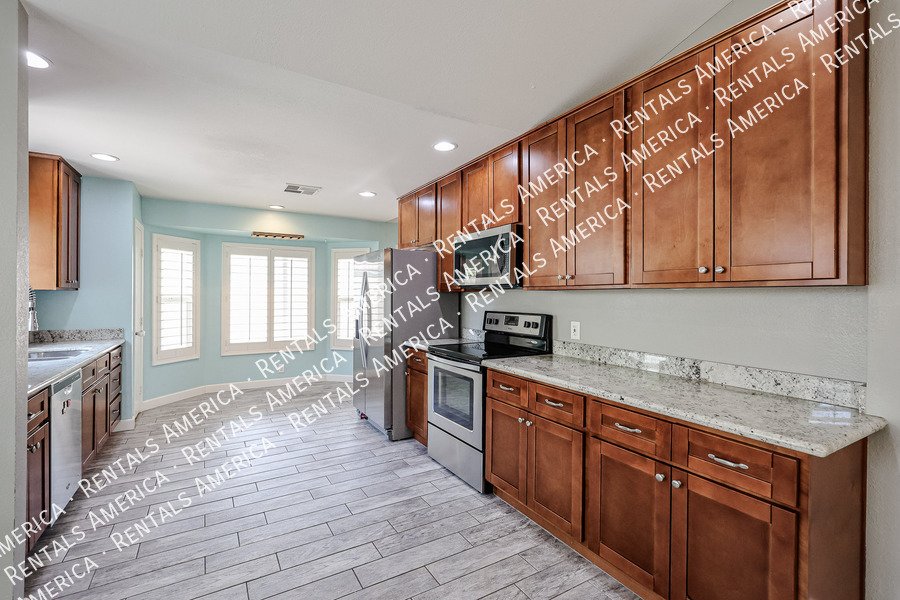 Feel at home with this charming 4-bedroom home that is sure to captivate with its elegant interior, featuring vaulted ceilings, wood shutters throughout and wood-look tile floors. The spacious great room, complete with a cozy fireplace, creates a warm and inviting atmosphere. The kitchen is a cook's delight, equipped with chocolate-stained cabinets, stainless steel appliances, granite counters, a handy pantry, and a delightful bay window. Retreat to the serene main bedroom, offering a private bathroom with dual sinks for convenience. The peaceful backyard is perfect for relaxation, boasting a covered patio, a lush grassy area, and ample space for outdoor activities. *One Time Admin Fee: $300, Pet Deposit: $300/pet (if applicable), Service Fee: 2%. $39/month Resident Benefits Package* Helping Heroes Discount Available! ONE DOG 35LBS OR LESS OKAY.