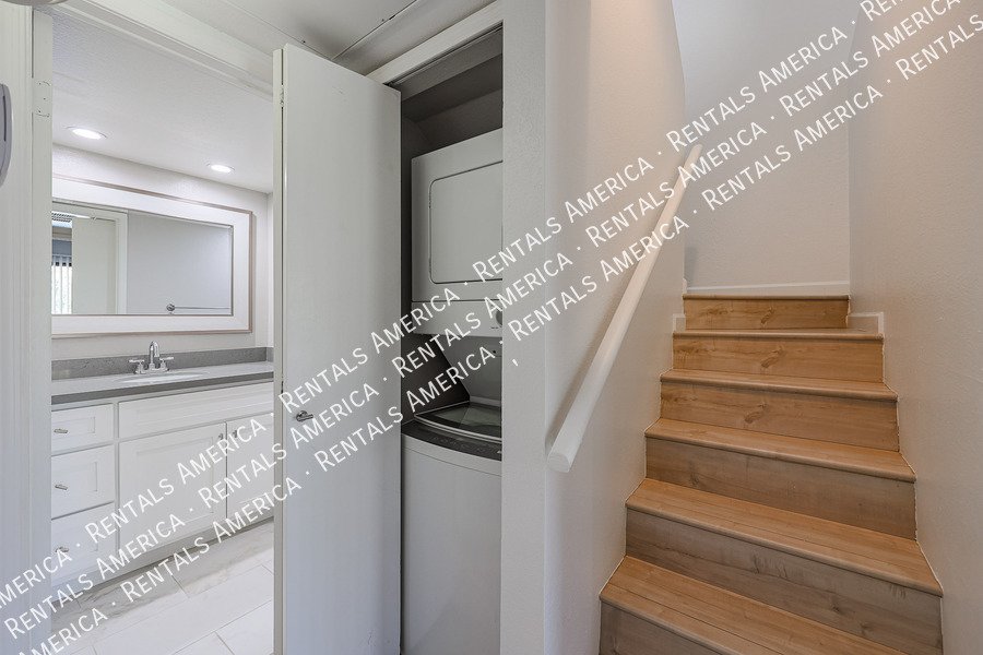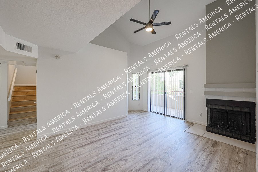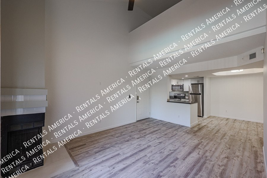 You will be more than happy to come home to this inviting condo that lets the light in with sliding glass doors on both floors. The light vinyl plank flooring goes perfectly with the white cabinets and makes a beautiful contrast in the kitchen with the darker granite countertops and stainless steel appliances. This condo includes a fireplace in the living room and a 2nd floor master bedroom overlooking the living room with ensuite bathroom and wrap around balcony. All appliances included along with a covered parking spot and access to the pool and fitness room. One pet 20lbs or under considered with an approved application.