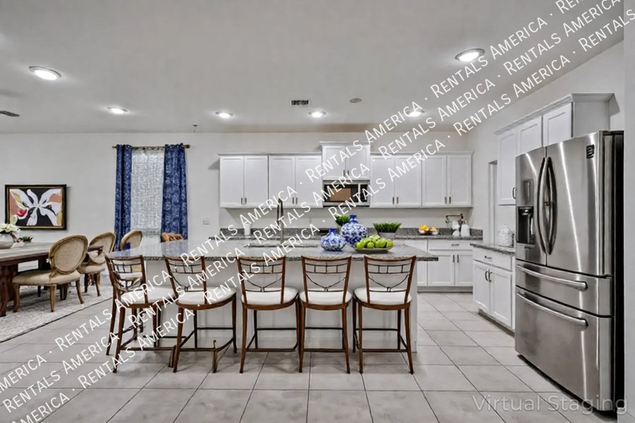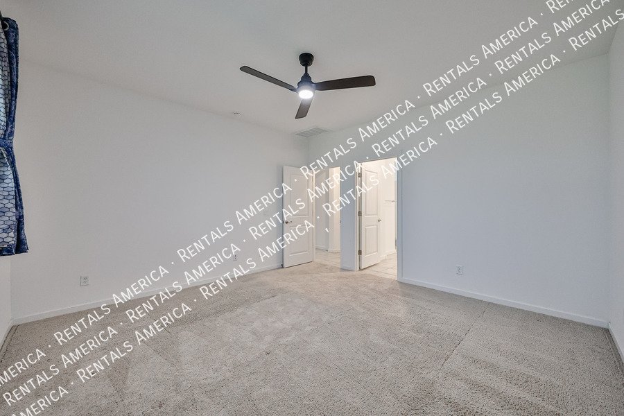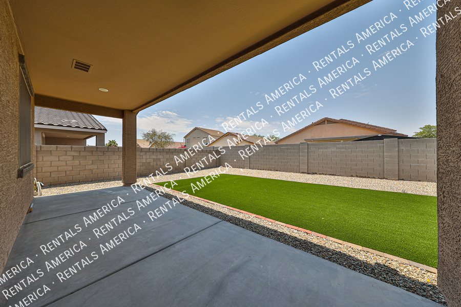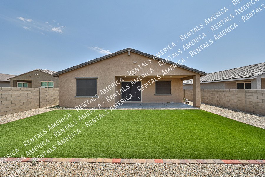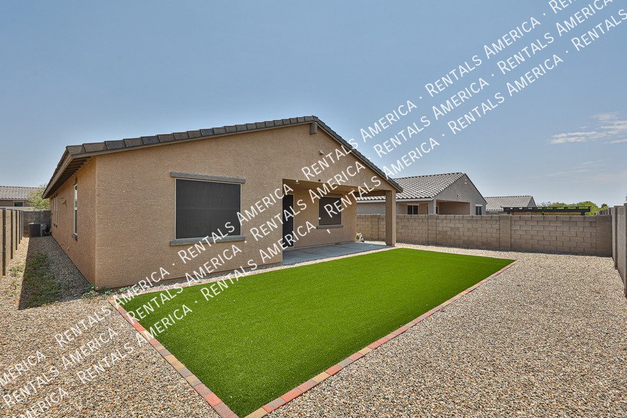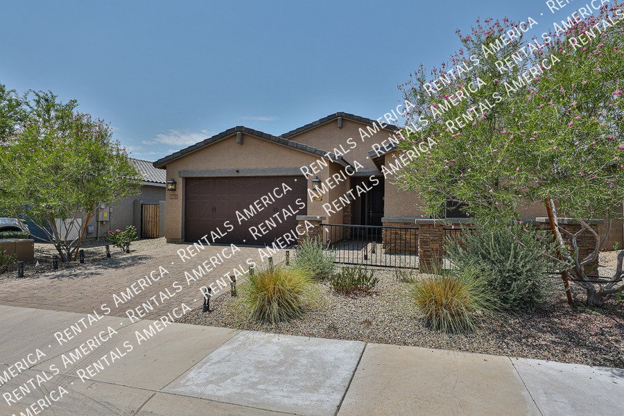 Come and view this beautiful home located in the Community of Coyote Ridge in Buckeye. This home features a whole home soft water system and RO system in the kitchen, 12 kw solar panels, garage equipped w/electric car charger. 4-Bedroom, 3 Bath, Split floor plan with En-Suite, office/den, ceiling fans in all bedrooms, recessed lighting throughout, large open kitchen with walk-in pantry, granite counter tops, white cabinets, separate dining room with lots of natural lighting. Easy to maintain backyard with turf and extended covered patio, front yard desert landscaping. Playground located across the street, close to lots of shopping, restaurants and much more! Pets are welcome up to 40lbs. Security system will be removed prior to move in.