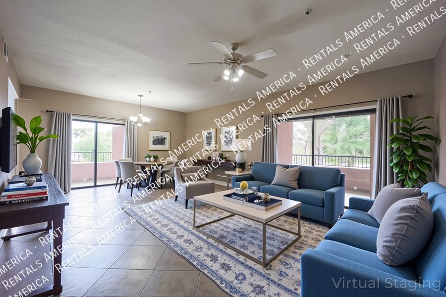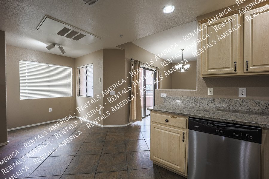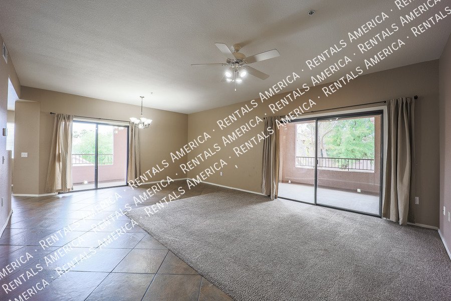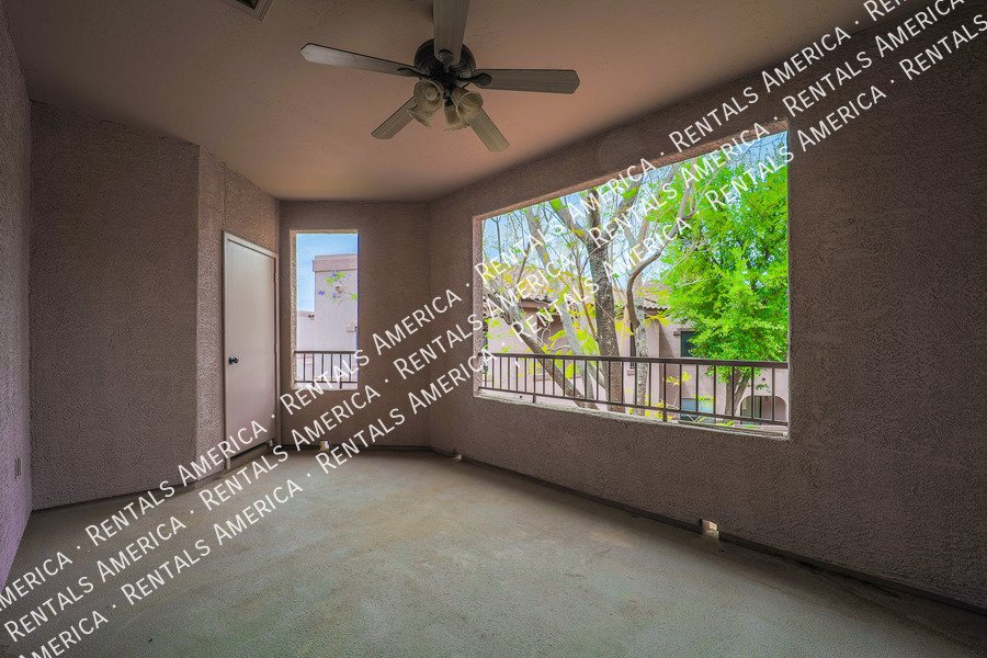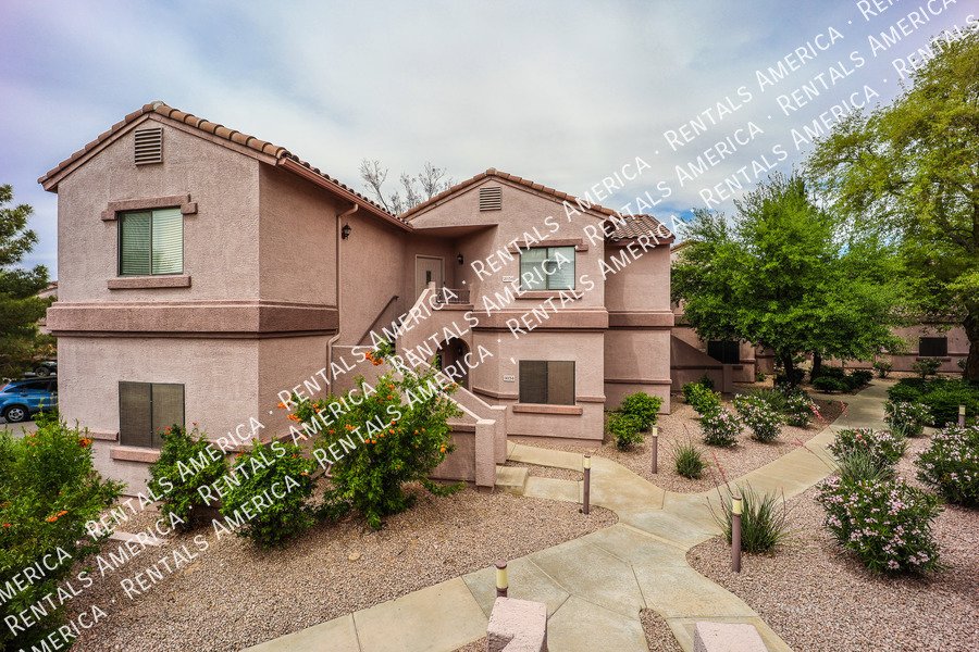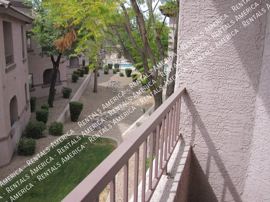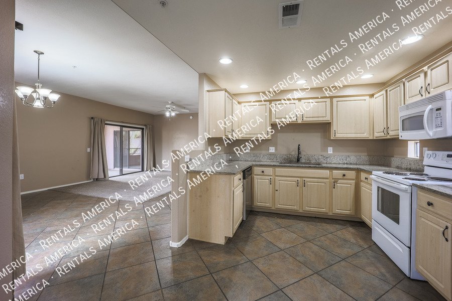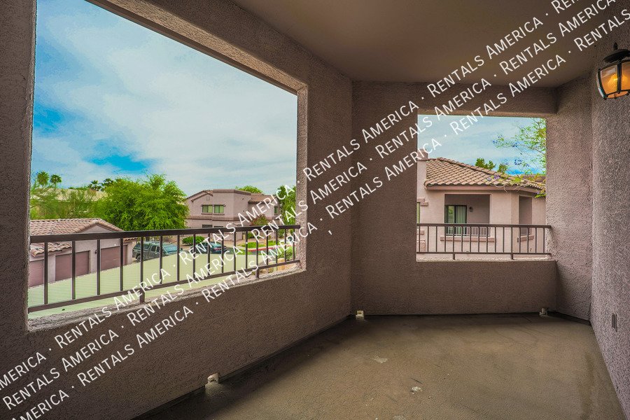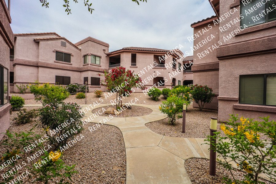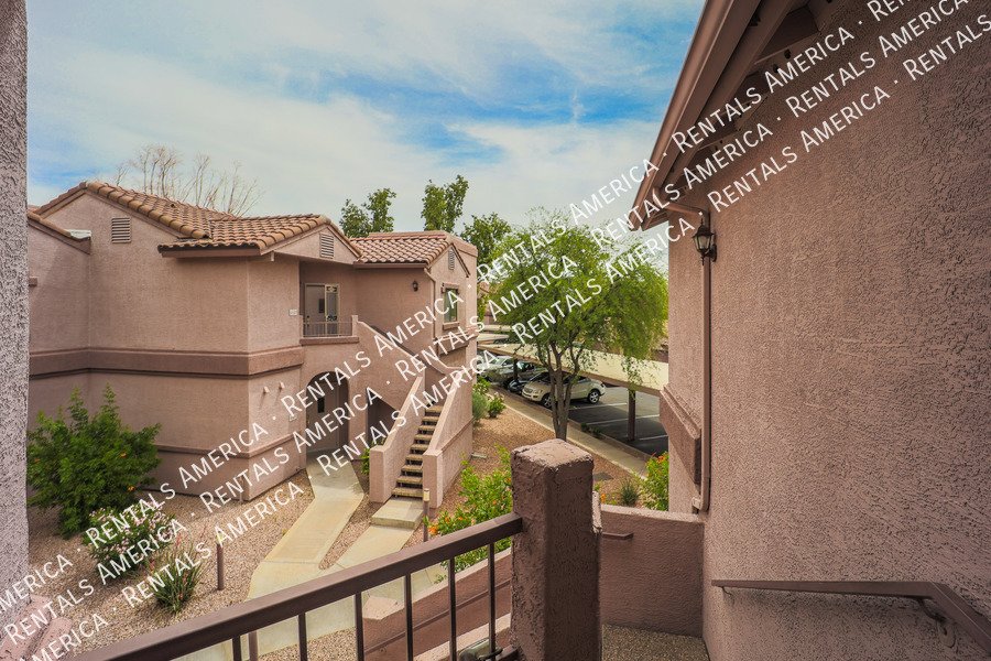 Very nice 2BR, 2BA condo + DEN with a GARAGE in excellent location! You'll love the open floor plan w/ spacious great room, open kitchen, granite kitchen counters, split bedrooms, and Arcadia doors to private balconies from both the master bedroom and the living room. Excellent North Scottsdale location within walking distance of great shopping and restaurants and easy access to highway 101. This unit also includes a 1 car garage! You'll love it! (Please note: HOA will only allow pets 15 lbs or less.) Available NOW!!!