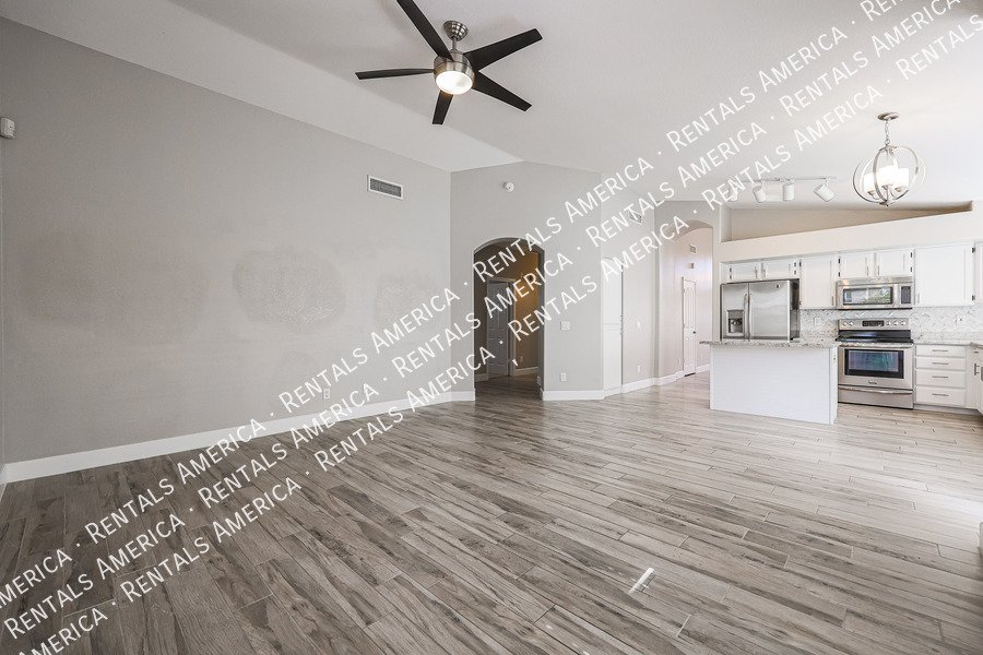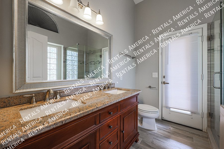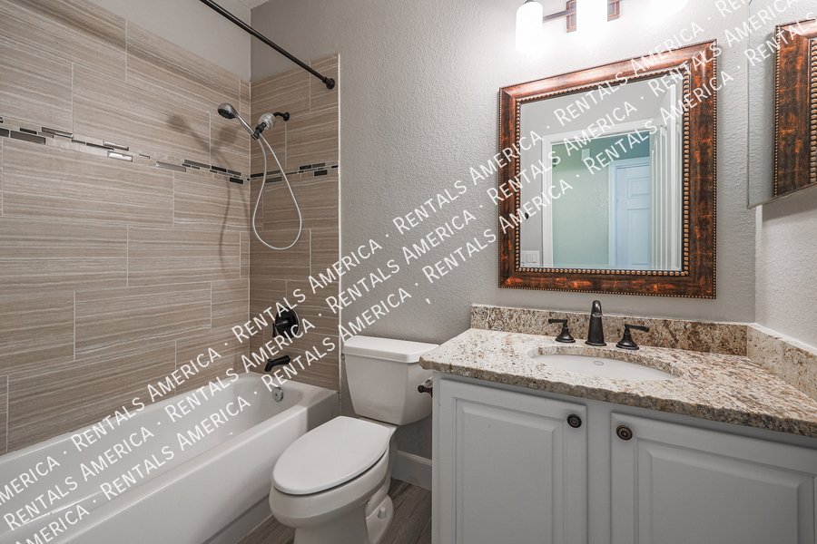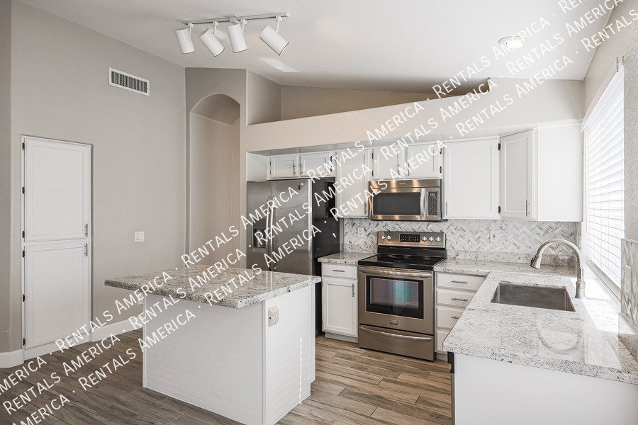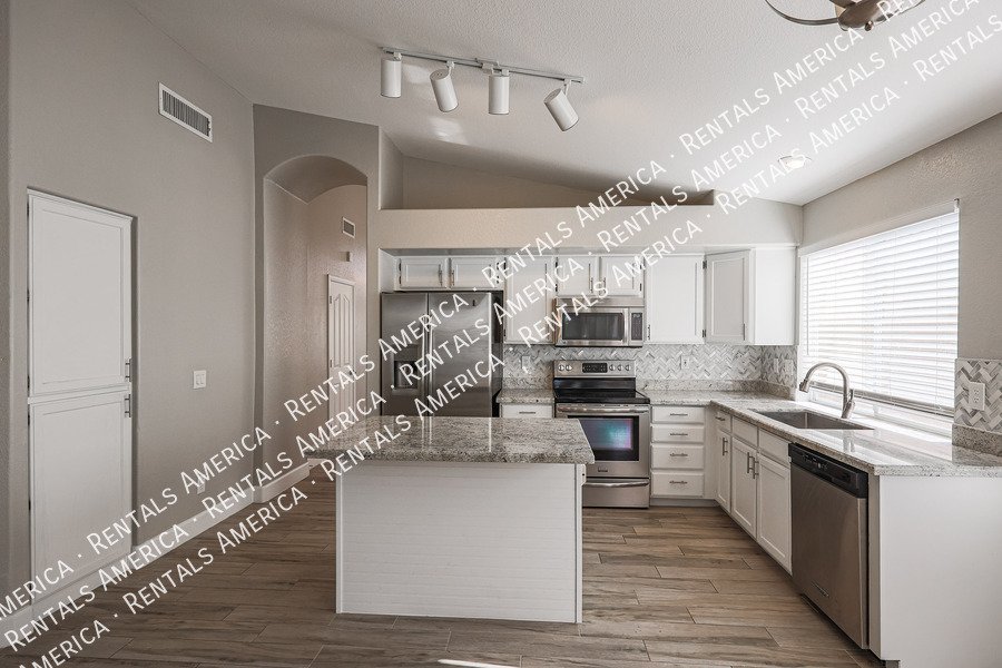 3 bedroom/2 bathroom house with low maintenance front and back yards. Large baseboards, wood looking tile, granite counters,and so much more. Close to great schools and shopping. You won't find a nicer rental than this!