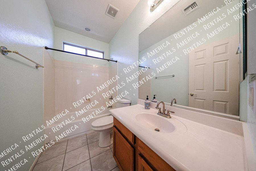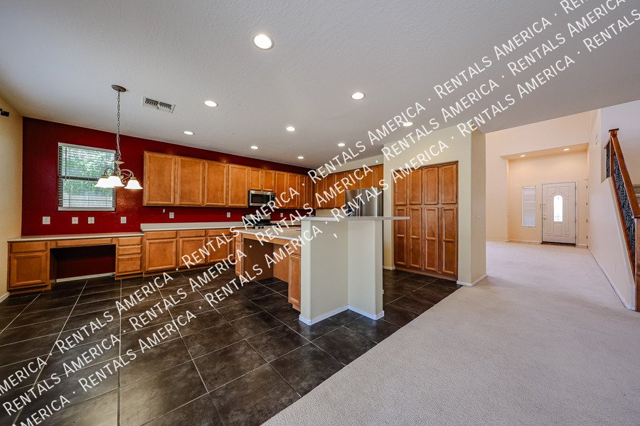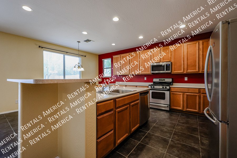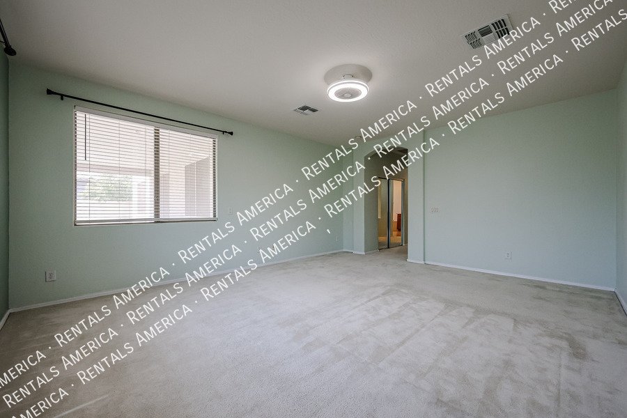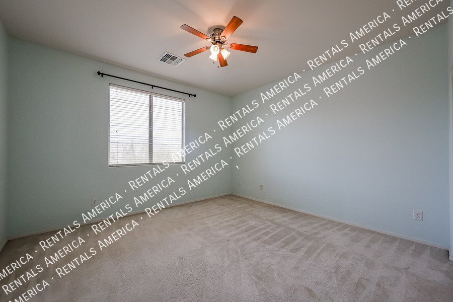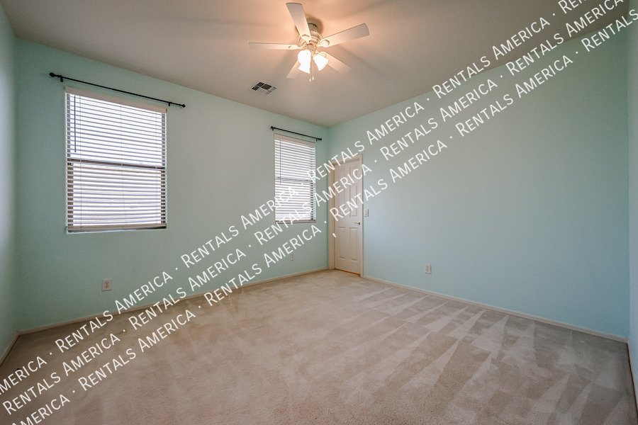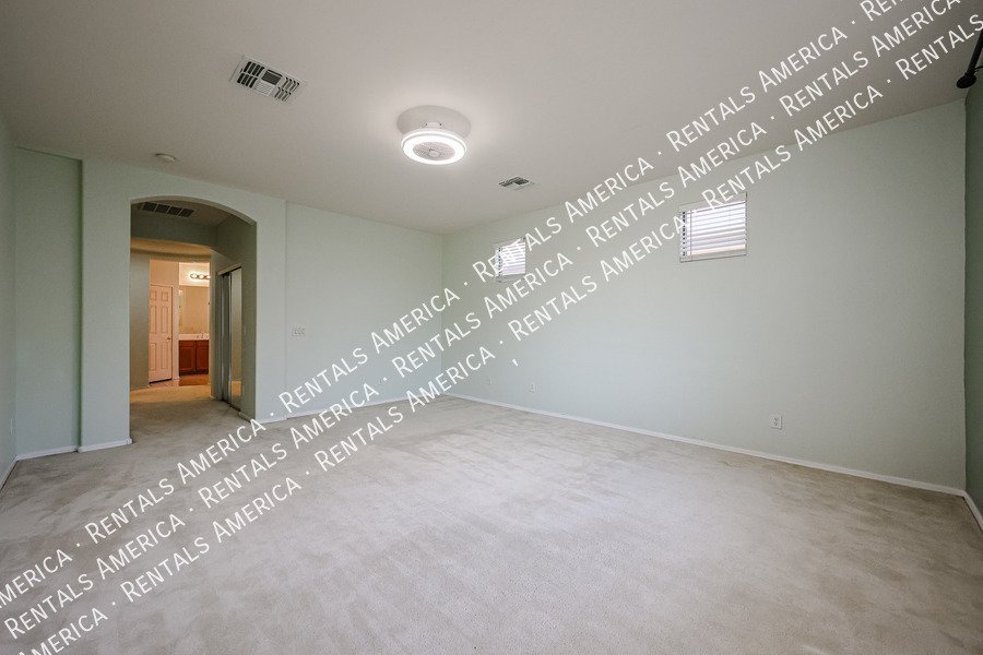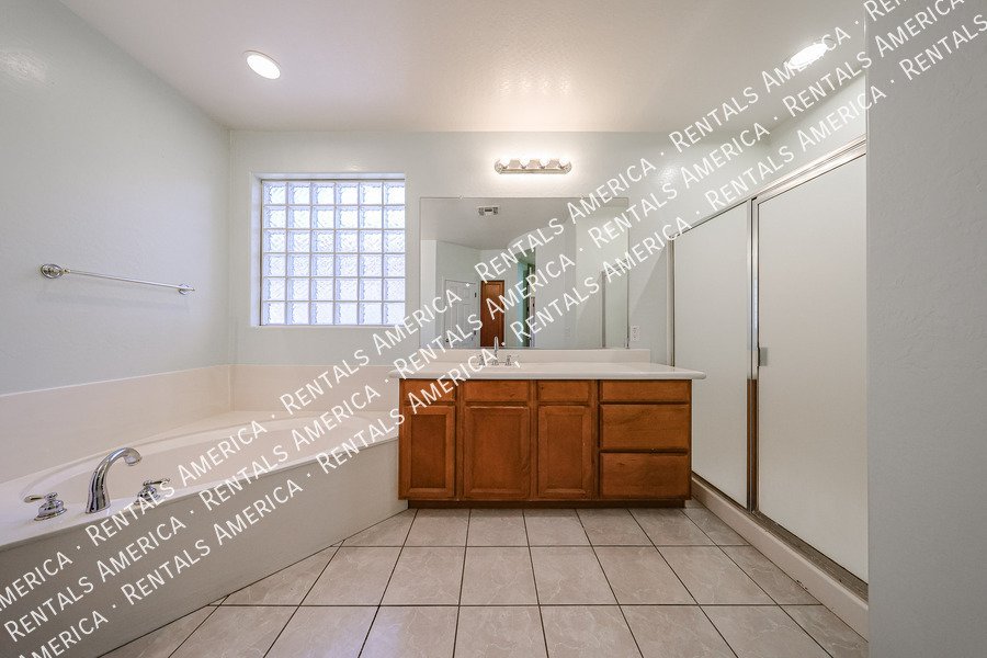 Very nice open layout includes large living/dining room leading to family room and eat-in kitchen. Kitchen features dining nook, oversized island w/ raised breakfast bar, stainless appliances, gas range, built-in microwave, recessed lighting and plenty of solid hardwood cabinets. Downstair Primary Suite has a walk-in shower, garden tub, two vanities, private toilet room and large walk-in closet. Upstairs large center loft w/ recessed lighting and view of lower level. Lighted ceiling fans throughout. 3-Car Garage. Mountainous views and easy access to shopping, entertainmet and South Mountain.