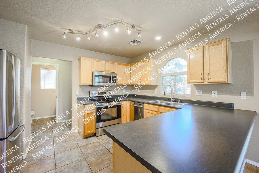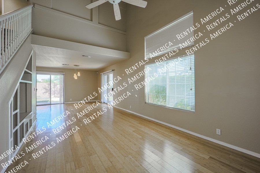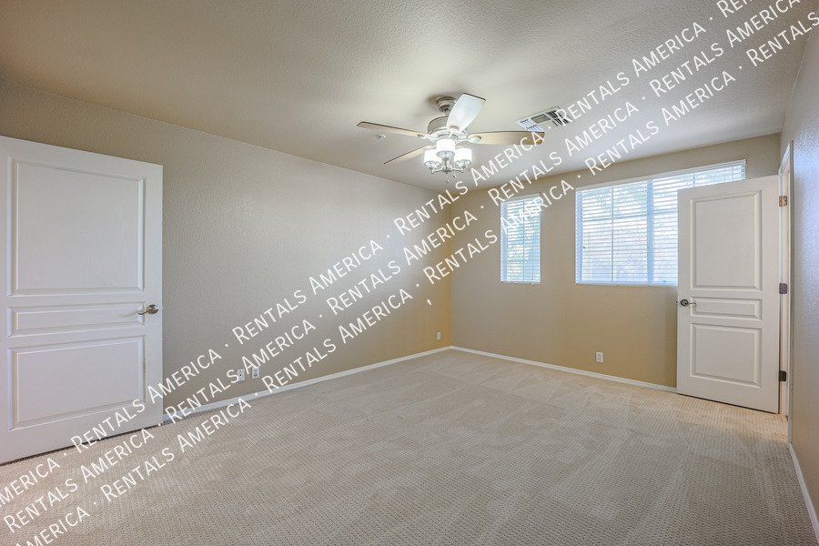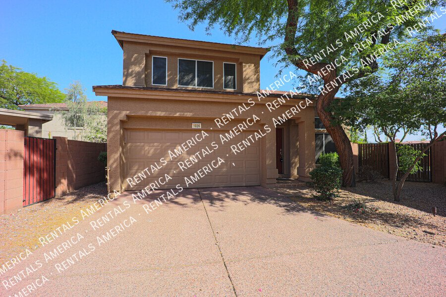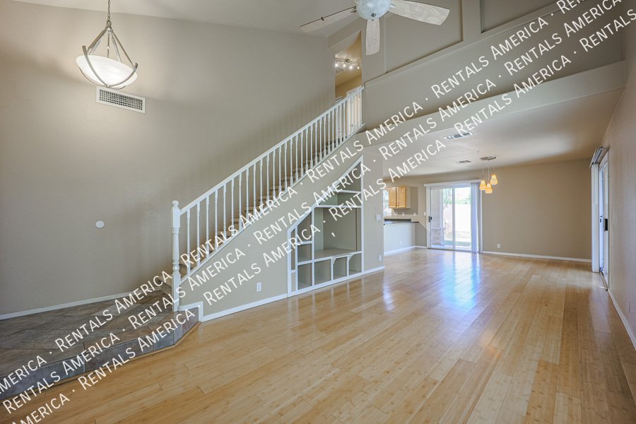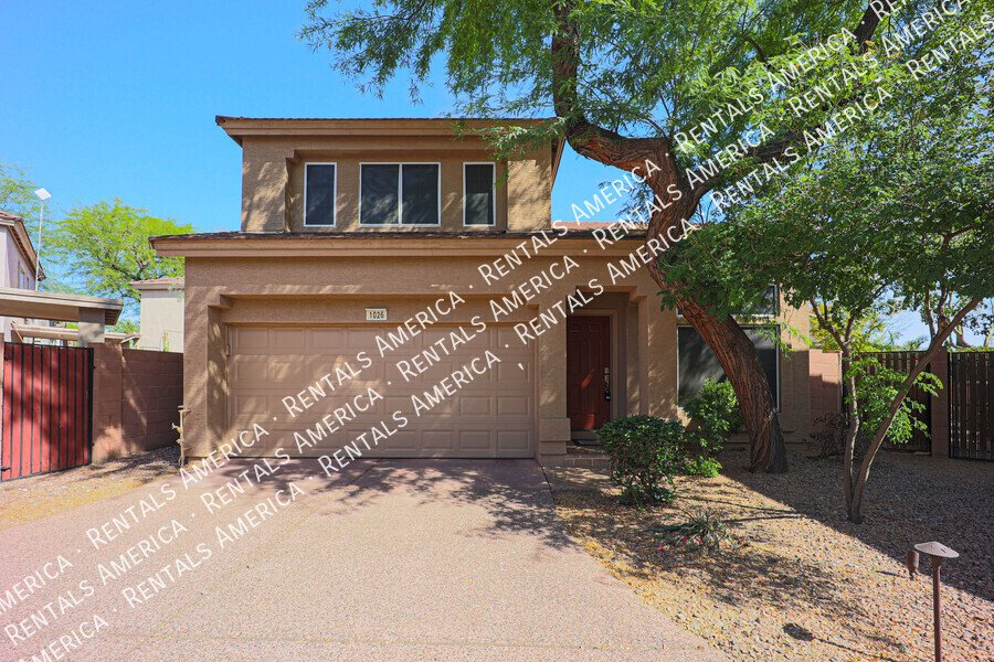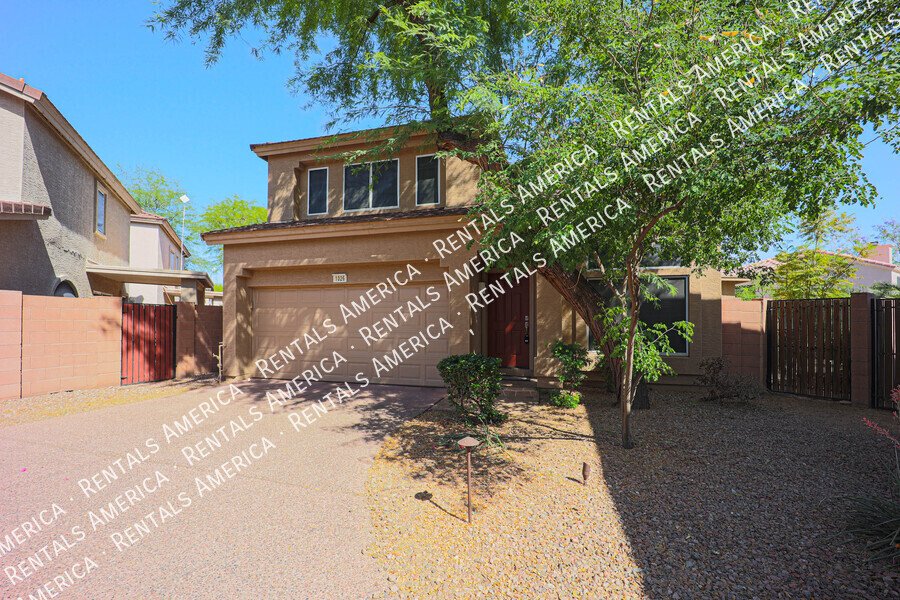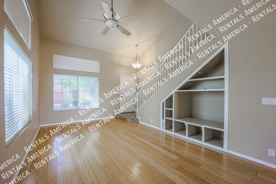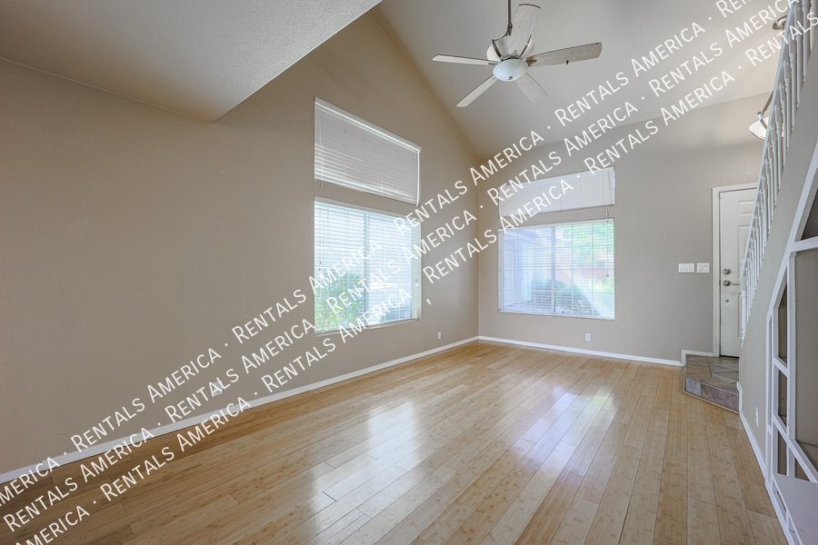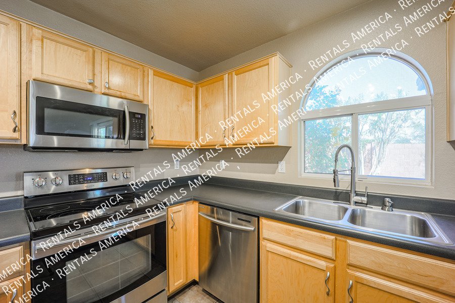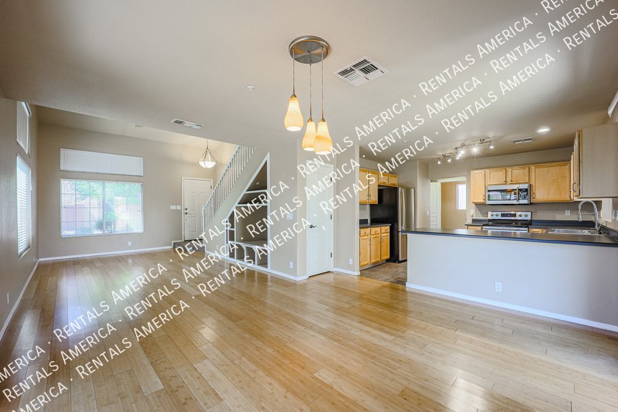 2 bedroom 2.5 bath with den close to dining and easy freeway access. Open floorplan with all hard surface flooring downstairs and brand new carpet upstairs. Built in media unit in family room, spacious kitchen with all stainless steel appliances provided, lots of natural light and access to covered patio and lush backyard. LANDSCAPE SERVICE INCLUDED! Community pool nearby. Must See!