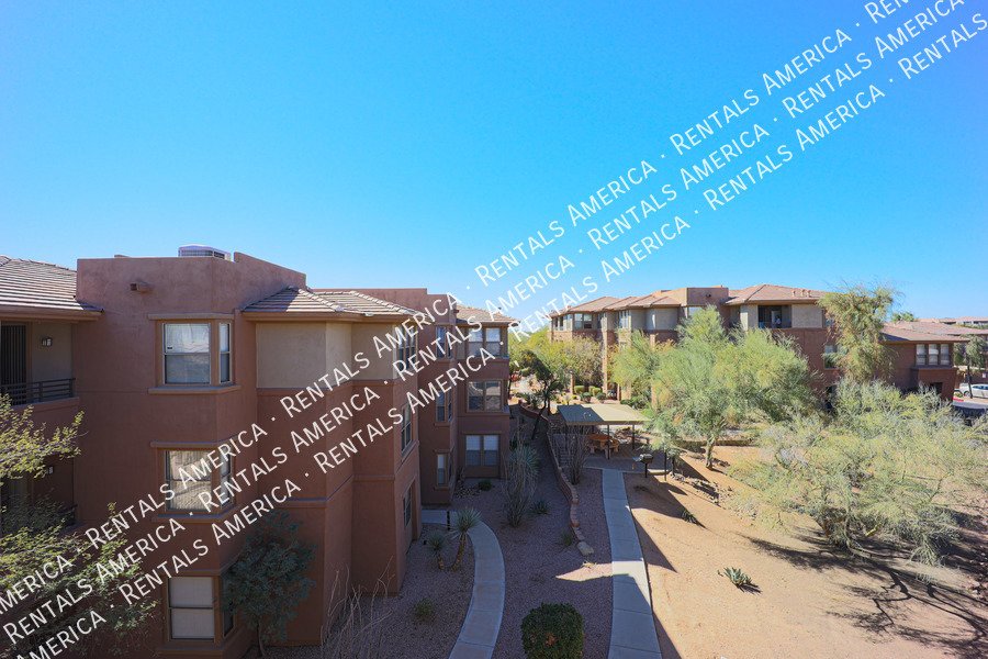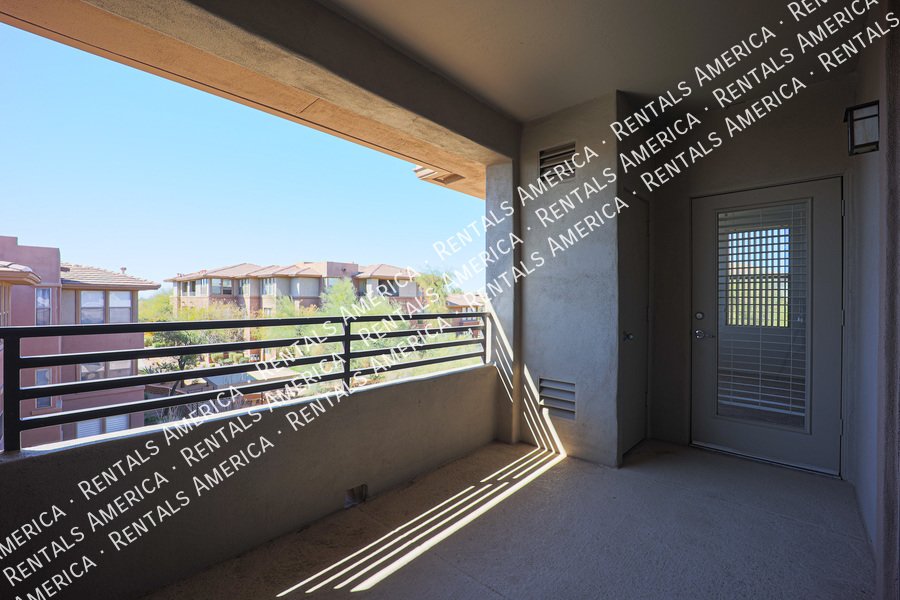 $500 OFF 1st Month's Rent, If lease start date by 3/1! Amazing Grayhawk 2 BR/2 BA Condo w/ 1-car garage unattached. Open floor plan, 3rd floor views w/ no units above. Roomy patio accessed from living rm and primary bedroom. Spacious living room w/ gas fireplace and connecting dining.  Kitchen includes breakfast bar, pantry closet, stainless steel appliances, built-in microwave and hard wood cabinetry. The primary suite has mirrored walk-in closet, private toilet room and transom windows for additional lighting. Split guest bedroom, bathroom and hall desk. Vertical blinds and ceiling fans thoughout. New vinyl plank flooring in kitchen, bathrooms & living rm. Washer / Dryer included. Allow one pet cat or dog up to 25 lbs. Water flat fee of $30/mo. $1950.00/mo for 2-year lease.