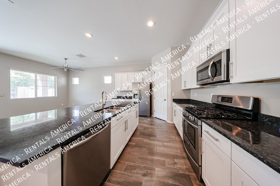 $500 off first month w/13-month lease. Come and view this gorgeous 4-Bedroom, 2 Bath home located in a cul-de-sac in the Community of Layton Lakes. Walk into an inviting beautiful home, wood like tile flooring and carpet in the bedrooms. Kitchen has stunning white cabinets, stainless-steel appliances, extra-large island/breakfast bar. Open living room with double sliding glass door leads out to the covered patio and low maintenance backyard. Split floor plan with ample size bedrooms. This community has much to offer, lakes, walking/biking paths, playgrounds, basketball, tennis and volleyball courts. Close to shopping, restaurants and access to the South Loop 202. No pets allowed