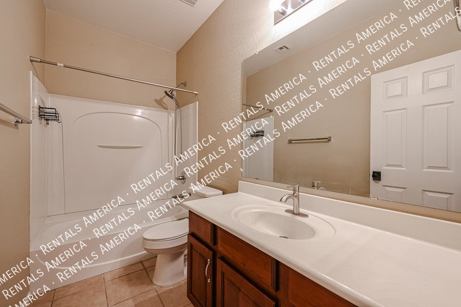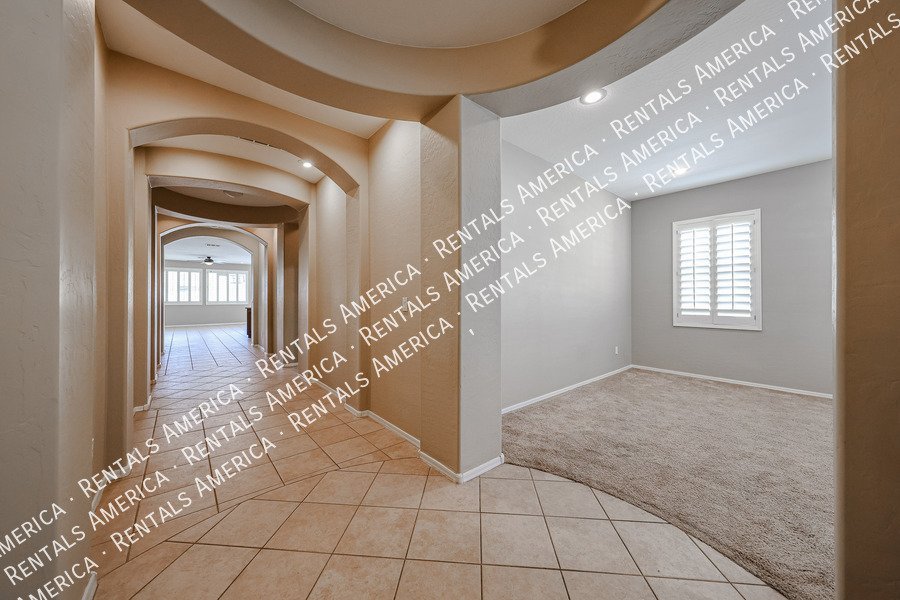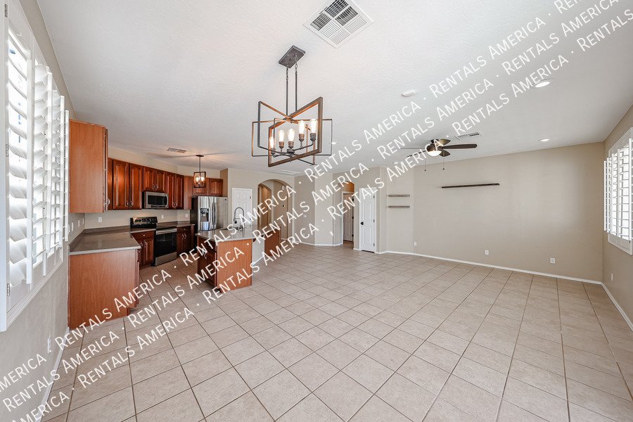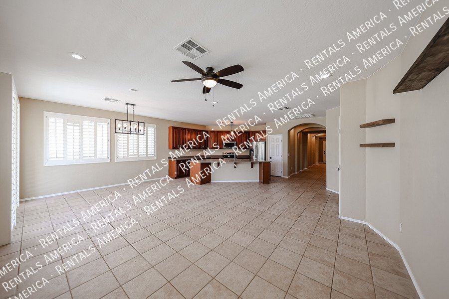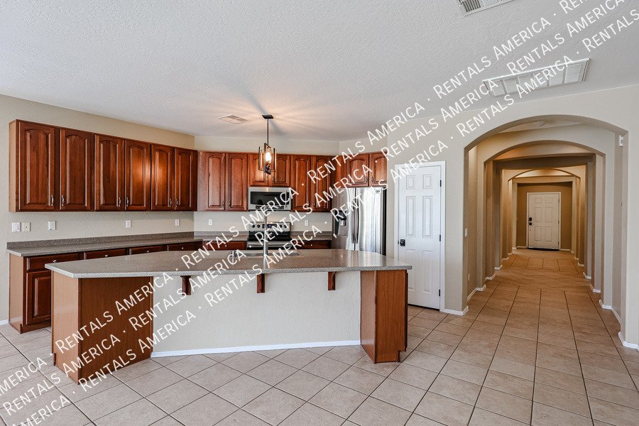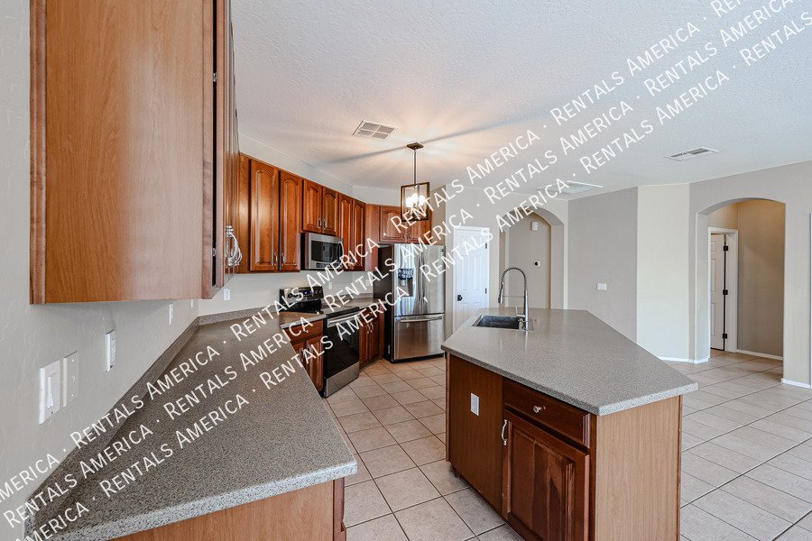 Spacious 4-bedroom, 2-bath home plus a versatile den/formal living room, offering over 2,100sq ft of living space. Features include upgraded kitchen cabinetry, large island, pantry, tile in main areas, and plush carpet in bedrooms and den. The primary suite boasts double sinks, a private toilet room, and a walk-in closet.