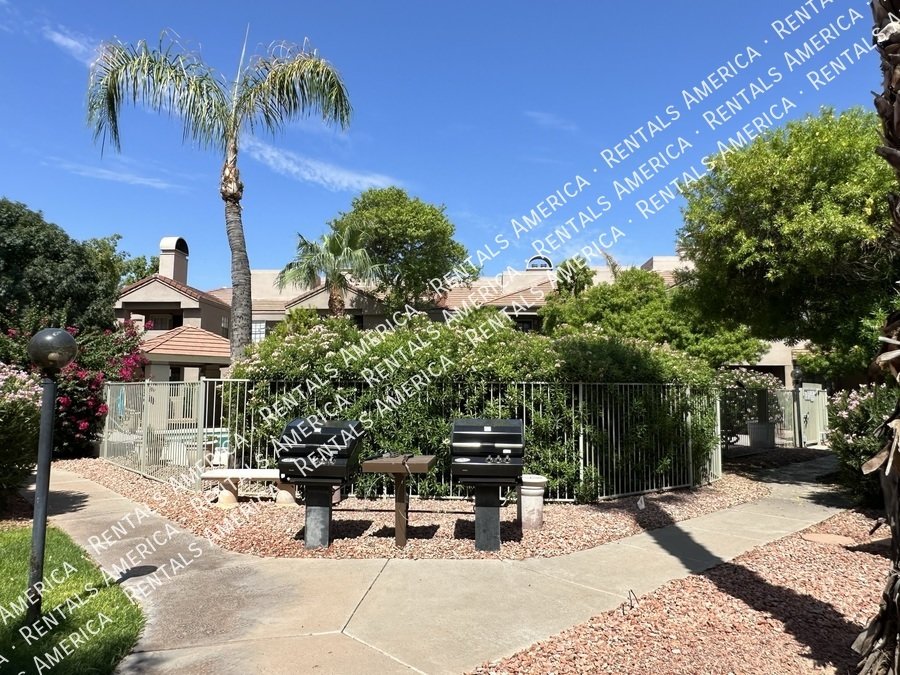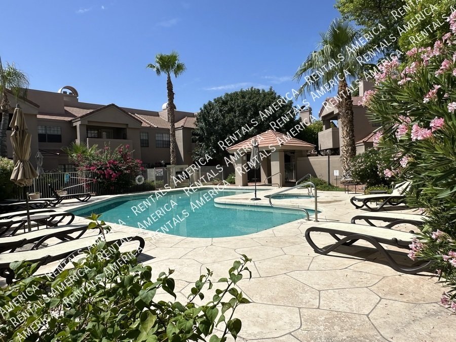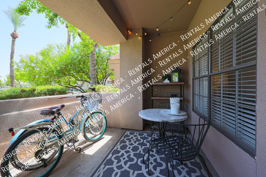 Elegant and modern lower-level condo in highly sought after Villa Antigua Community near Old Town Scottsdale. As a corner unit it is quiet and only has 1 common wall. Updated kitchen, baths, dining & living room! The split bedroom floorplan is like 2 masters, each with a full bath and walk in showers, spacious walk-in closets. The beautiful kitchen has stainless steel appliances with white subway backsplash tile, gorgeous granite, very modern and clean. There is no shortage of cabinets or storage shelves in this kitchen, there is also a separate quaint dining area. Beautiful Cherrywood flooring throughout to add elegance. The living room is a great size with a fireplace and desk area that is perfect for those who work from home. Bathrooms both are modernly updated with a tub in the secondary bathroom and walk-in shower in master. The property is minutes from 101,fwy ASU, Sky Harbor, Scottsdale Fashion Square, Chaparral Park, golf and many restaurants. The access to the canal is just steps away from the front door. 2 community pools (one heated year-round); 1 hot tub, gated community that has mature landscaping & includes tennis, heated pool, spa, a clubhouse with exercise equipment & a business center! Pet friendly w/ owners approval. Unfurnished.