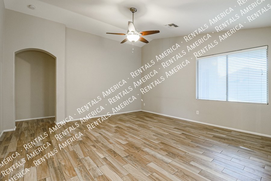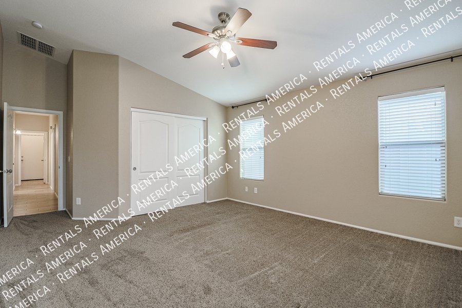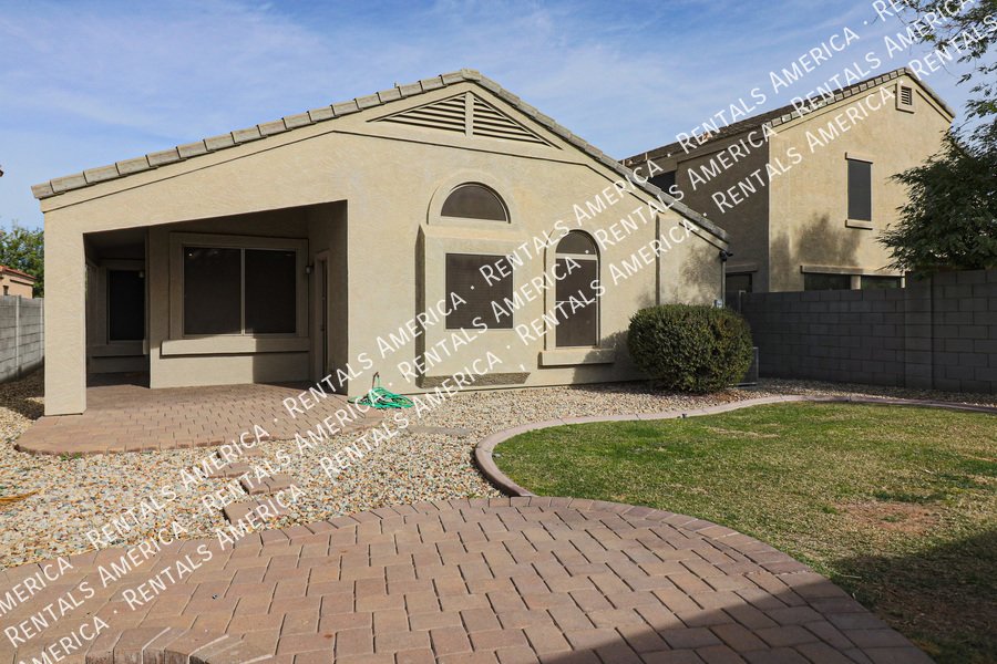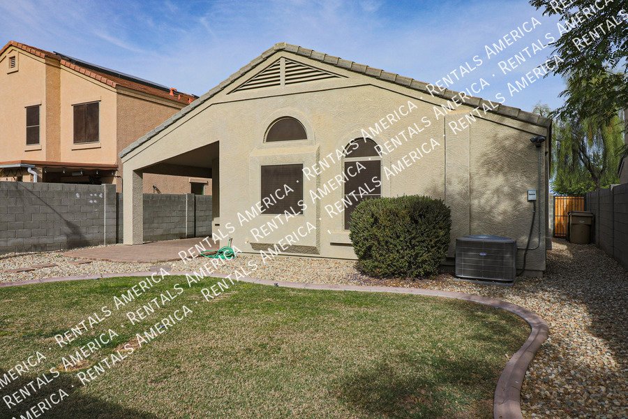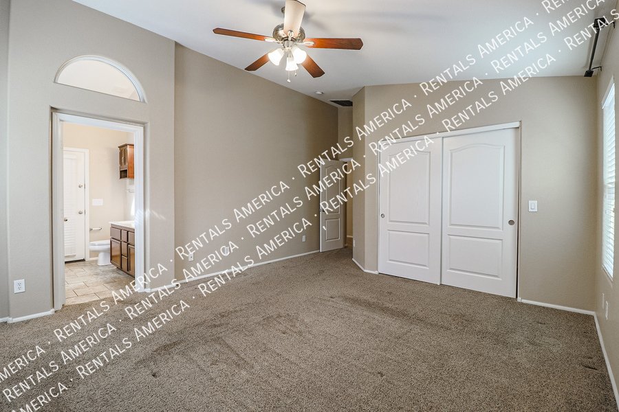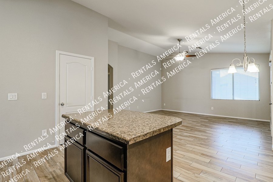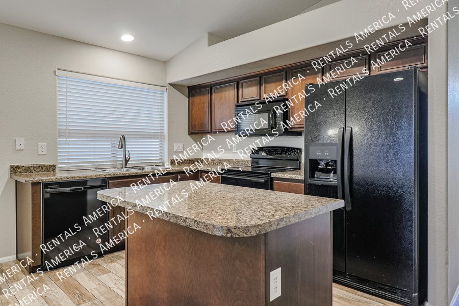 Coming Soon! Available 10/24, please Do Not disturb the occupants! Beautiful open layout formal living / kitchen at entry leads to kitchen, then family room with side access to back yard. Kitchen features island w/ breakfast bar, all black appliances, built-in microwave rich, dark cabinetry and dining area. Large family room w/ side access to functional back yard with a covered paver patio, open paver patio w/ firepit and bordered grass area. Owner suite includes spacious bedroom, walk-in closet, double sink vanity, garden tub, walk-in shower and back patio access. Attractive plank tile in all livable areas. Carpet in all bedrooms. Vaulted ceilings, recessed lighting, updated fixtures and ceiling fans throughout. Carpet cleaning scheduled.
