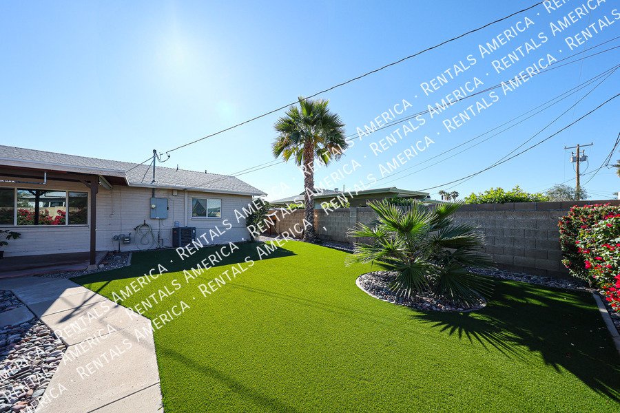 First full month rent half off with a 12 mo. lease starting by Feb. 15th, 2026! This is a fantastic find! Close to Old Town Scottsdale is this stylish 3 bedroom, 2 bathroom home on a large end lot in the Western Villa community. Galley kitchen, all kitchen appliances included. Walks out to dining areas and spacious great room. Smooth opening, glass door slider greets the expansive covered backyard patio, and yard designed with turf and stone. Front and back yard landscaping maintenance included with rent. Separate storage room, bonus shed and pavement suitable for another small vehicle also located in the backyard. Washer, dryer included and inside the home. Carpet in bedrooms, ceiling fans throughout, and luxury vinyl plank flooring in high traffic areas. Ideal location to close to the 101, many stores, and favorite eating establishments. Schedule your tour and apply today!