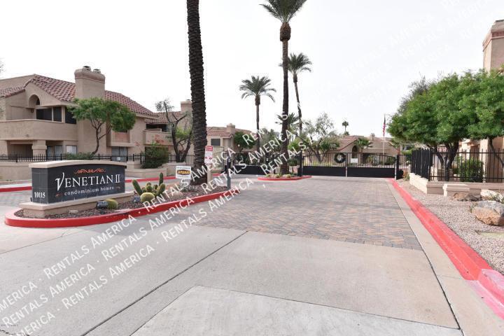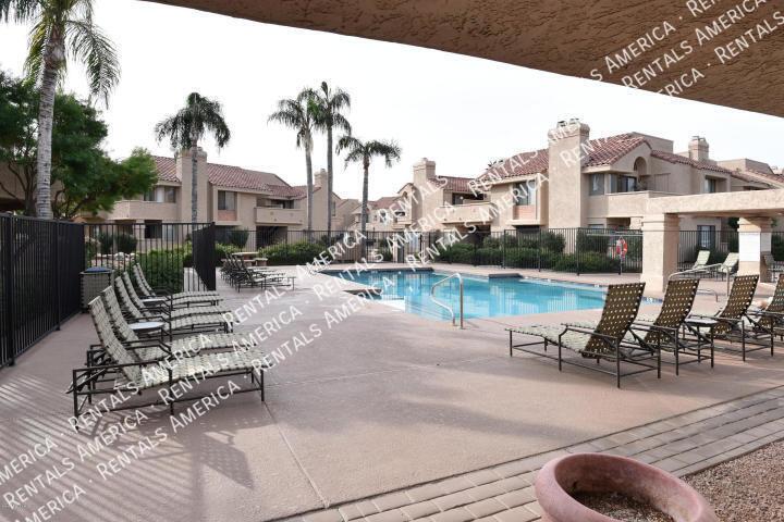 Light Bright and Open! This Ground Floor 2 Bedrm, 2 Bath Beauty with 1-car garage, covered patio, and storage shed features split bedrooms with laminate and tile flooring throughout. Tub in one Bath, Walk-In Shower in Master. All Appliances are Included! Master has TWO Large Closets AND a counter-top cubby for staying organized. Kitchen has raised panel, cherry finish cabinetry and opens to Great Rm/Living Rm with a Beautiful Fireplace! Ceiling Fans Throughout! Enjoy the Venetian's Heated Pool, Spa, Rec Room, & Fitness Center. With easy access to the Mercado Ranch Shopping Center, you have all you need within a walk or quick drive. Freeway access is also just minutes away. Here is your Opportunity to Enjoy Life in the Heart of Scottsdale Ranch.