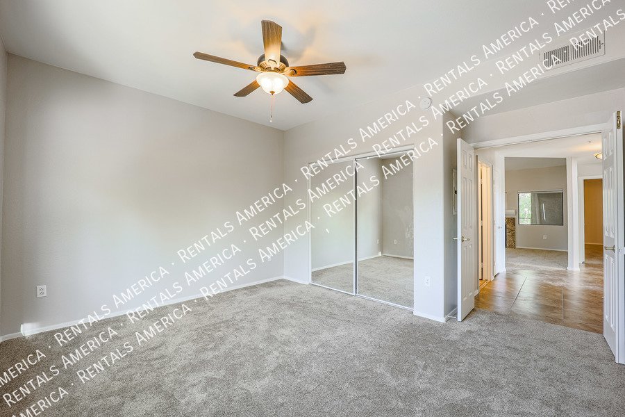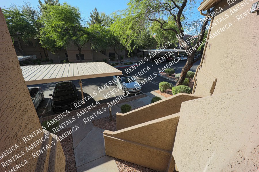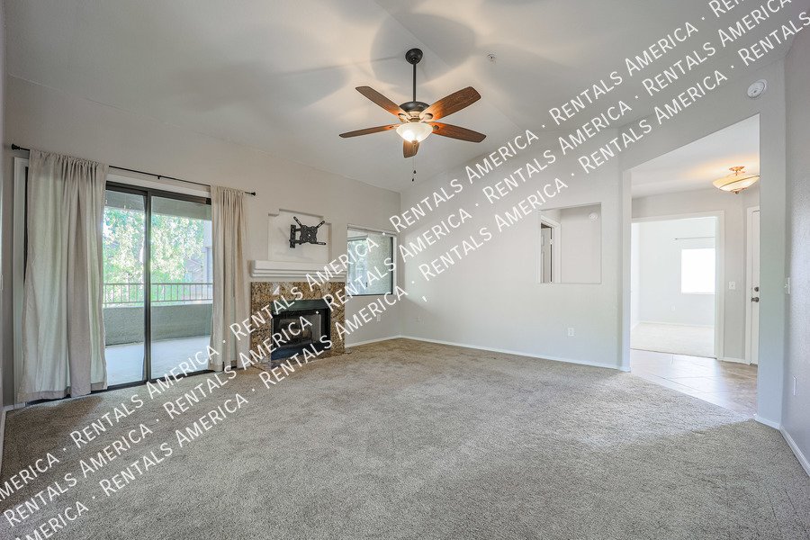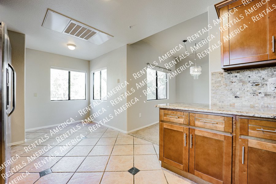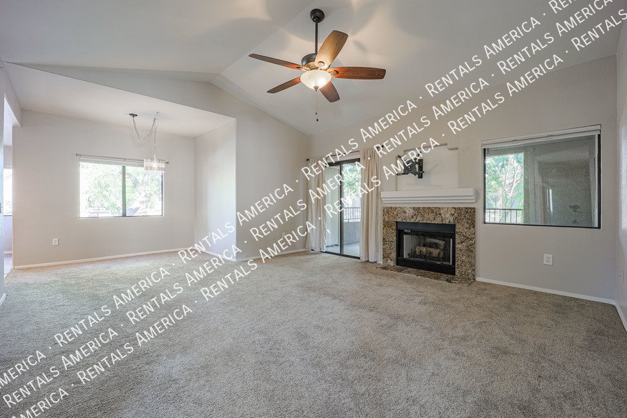 Adorable 2-bedroom + den condo! 2nd story, end-unit. There is a large living room area with vaulted ceilings and a fireplace, as well as access to the large balcony with storage. There is a formal dining space just off the kitchen. The kitchen features beautiful upgraded cabinets, granite countertops, stainless steel appliances and tile backsplash. There is a stackable washer & dryer just off the kitchen. The master bedroom suite is spacious & includes french doors, an upgraded stand alone shower, dual vanities, a walk-in closet and access to the balcony. The second bedroom is large & makes a great guest room or childrens room, while the den would make a fantastic office or playroom. There is also a relaxing community pool. HOA has a 15lb weight limit on dogs.