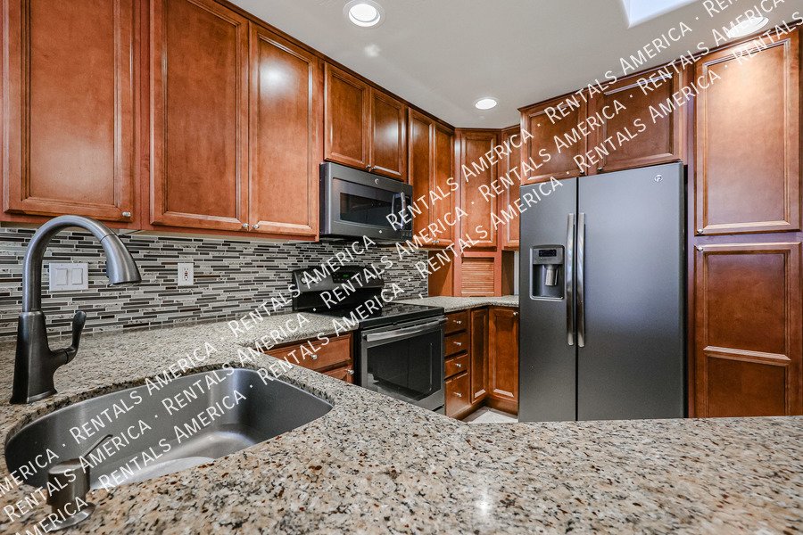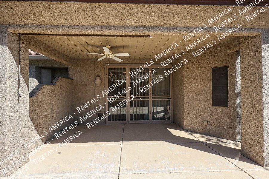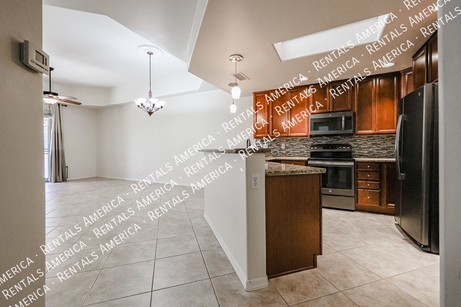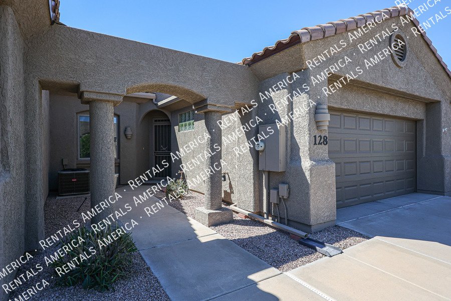 Age restricted 55+. Cute 2-bedroom, 2 bath condo located in the desirable gated community of Verde Groves. This beautiful home is a split floor plan with an en-suite. Open kitchen with granite counter tops, hanging lights over the breakfast bar, sky light and beautiful cabinets. All stainless-steel appliances, separate laundry room that leads into the garage with storage space. Quaint back patio to enjoy the beautiful spring weather. Window coverings on all windows and ceramic tile throughout. The Primary bedroom has double sinks, walk in closet with lots of shelf space and a shoe rack, walk in shower. The community offers many amenities, pool, lap pool and hot tub, BBQ area and outdoor fireplace. Residents gather for dance lessons, billiards, gym, and comfortable sitting area to relax. Small pets are welcome and basic cable included.
