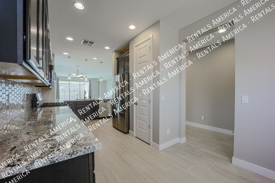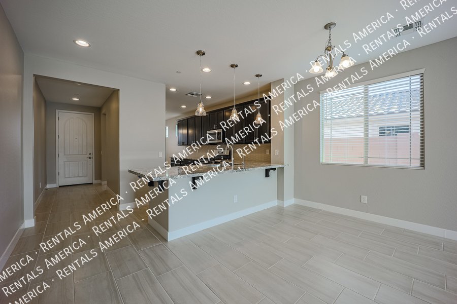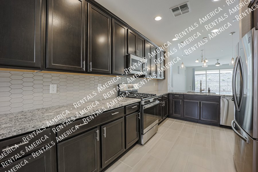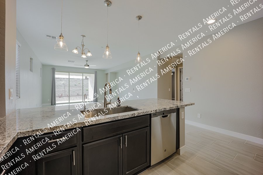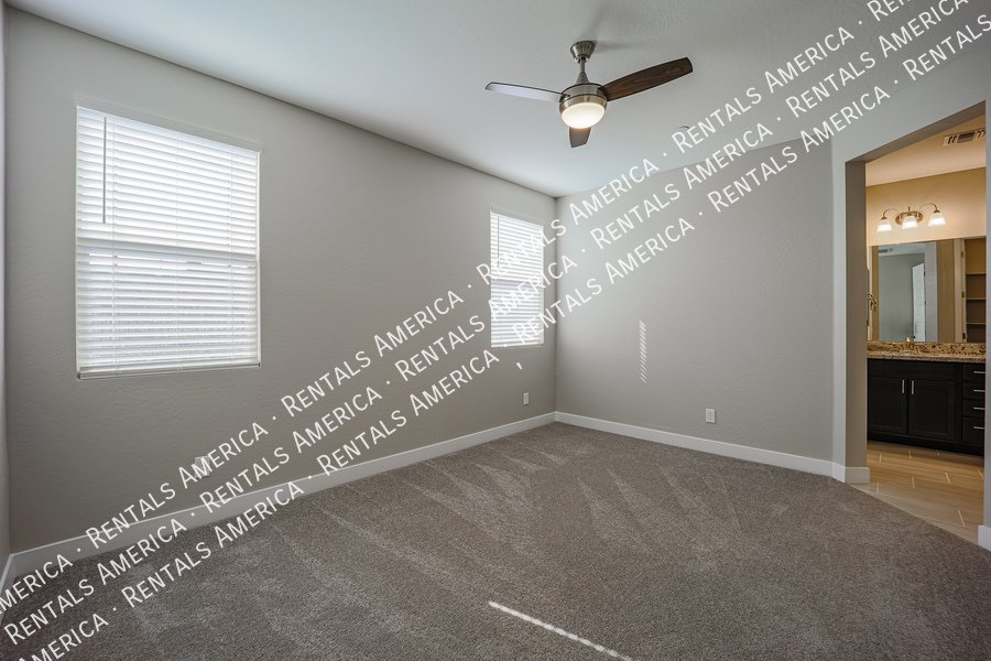 Mystic at Lake Pleasant adjacent to Vistancia. You will feel right at home the moment you walk through the door. Beautiful home in the Mystic subdivision. Attention to detail at every turn. 4 bedroom, 2 baths with ceiling fans in all the rooms with remotes. Upgraded 9 foot ceilings and 8 foot doors. Kitchen has granite counters with a tile backsplash and lots of cabinet space. Plus stainless appliances and a separate pantry as well. Custom master bath, tile counters and fixtures. Low maintenance front and back yard. With a community pool right up the street.