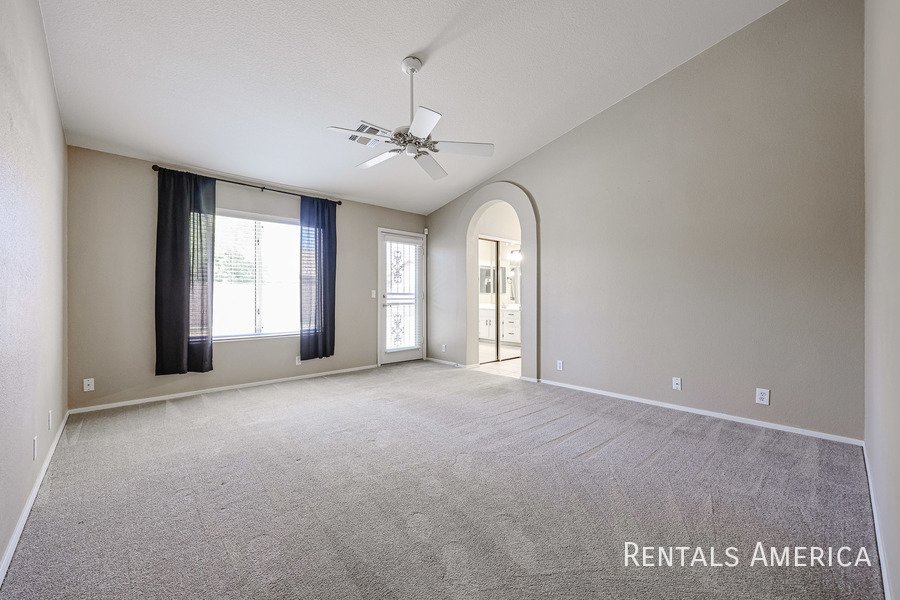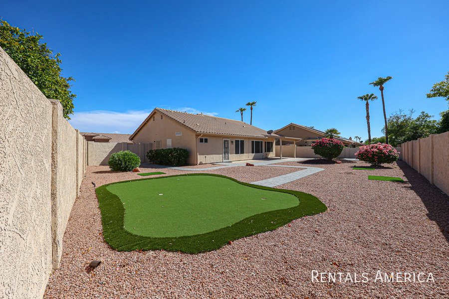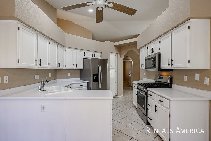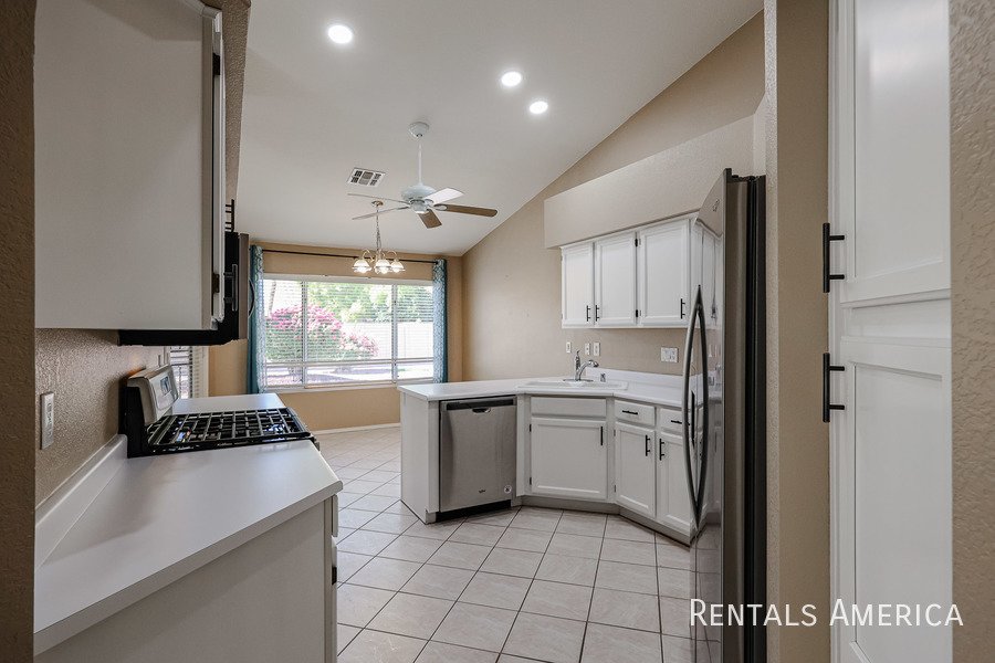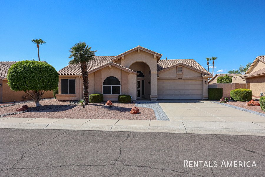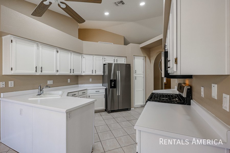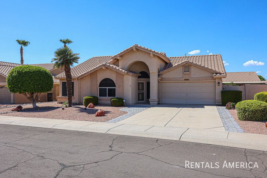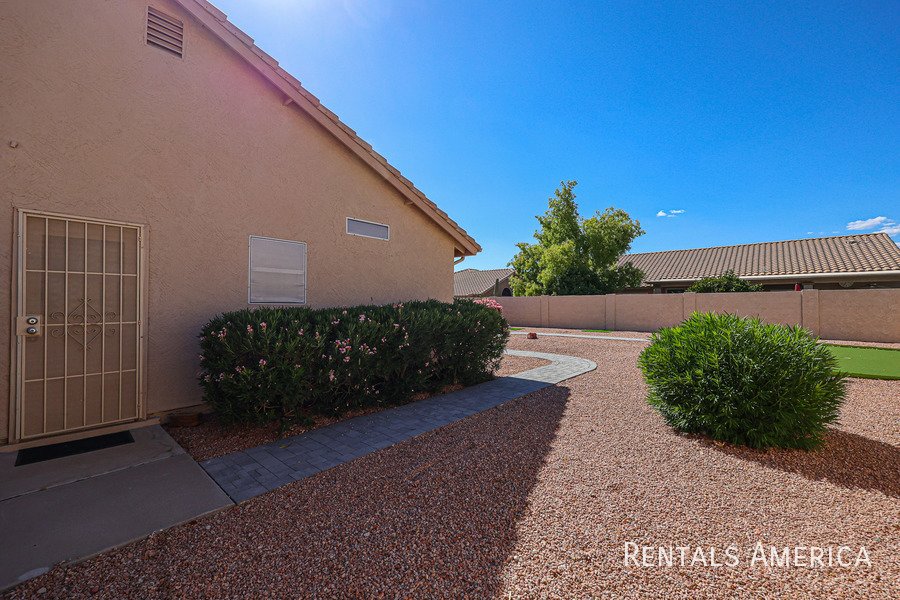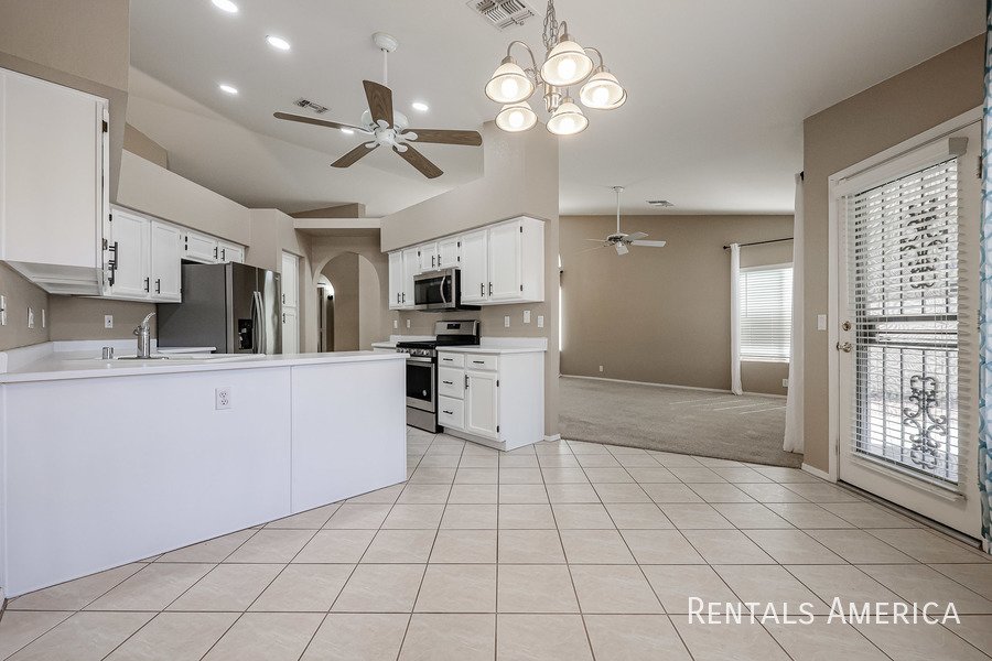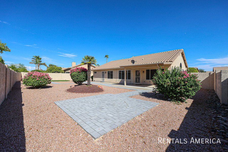 Beautiful Estrella home located in a fantastic resort-style community. This desirable 3-bedroom layout features a spacious living and dining area with vaulted ceilings. The bright and open kitchen offers views of the backyard, ample countertop space, a gas range/oven, a built-in microwave, and a refrigerator. The master suite is generously sized and includes a private bath with dual sinks and a large step-in shower. Additional highlights include cabinetry in the laundry room, built-in cabinets, and a utility sink in the garage. Enjoy relaxing or entertaining on the covered patio overlooking the backyard, which features easy-care desert landscaping. Residents have access to the community center, pool, and fitness center, as well as the numerous amenities that Westbrook Village provides. Conveniently located near Loop 101, Peoria Sports Complex, shopping, and dining. Dont miss your chance to experience this charming home in an exceptional community! *PETS UPON OWNER APPROVAL* Washer and dryer negotiable!