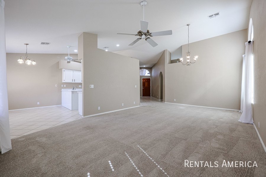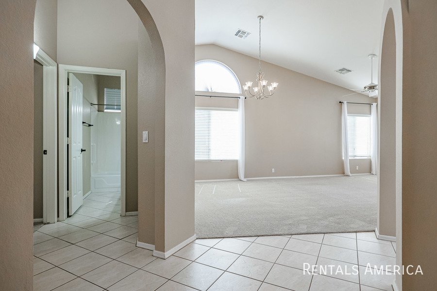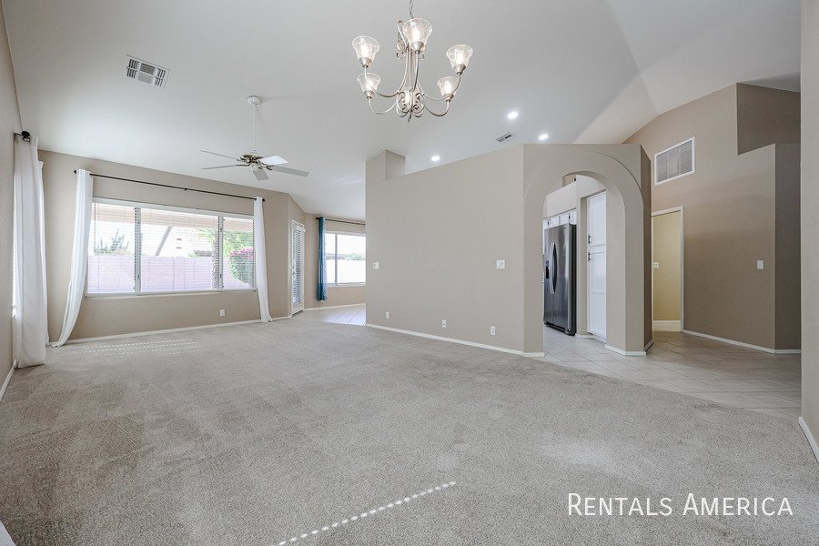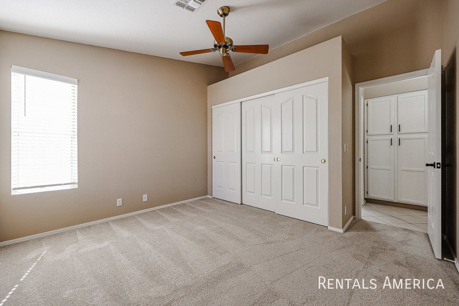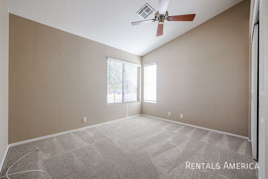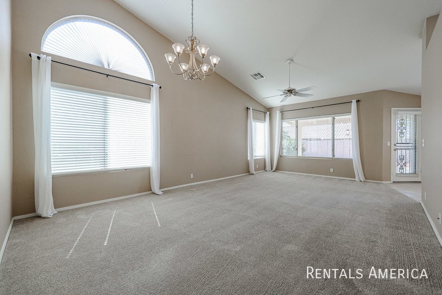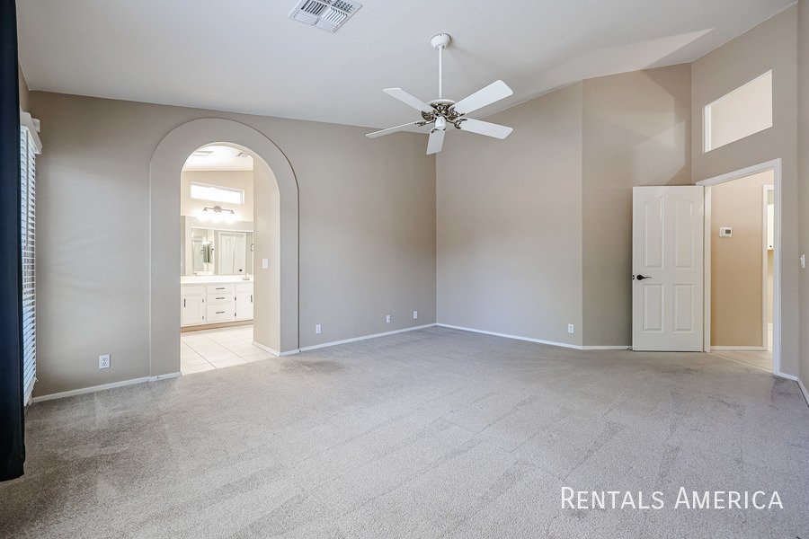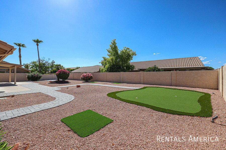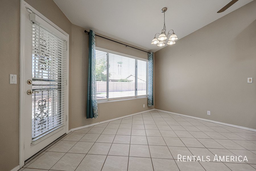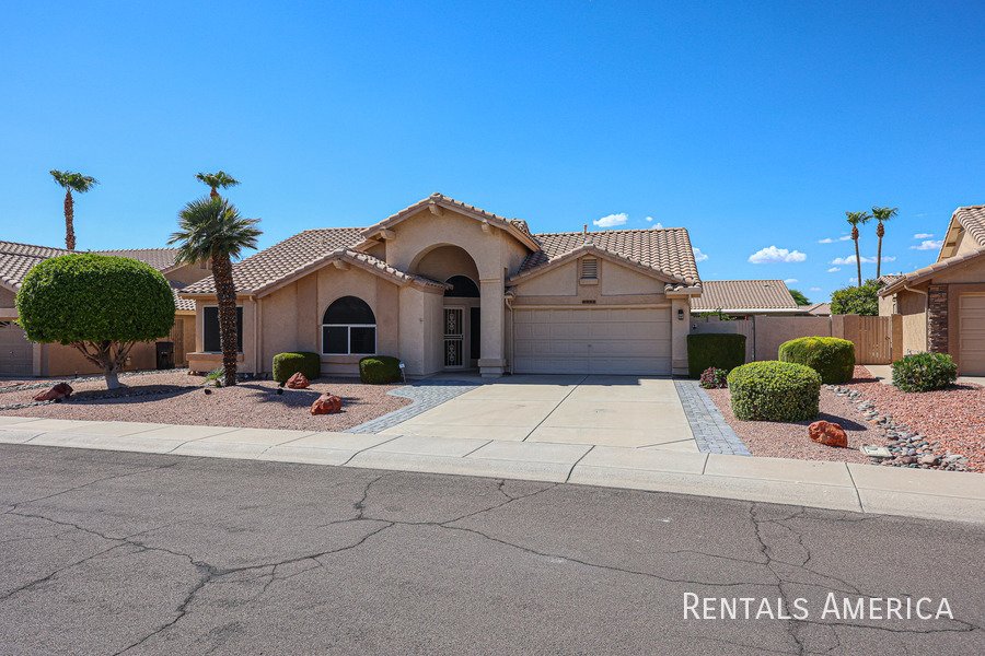 Beautiful Estrella home located in a fantastic resort-style community. This desirable 3-bedroom layout features a spacious living and dining area with vaulted ceilings. The bright and open kitchen offers views of the backyard, ample countertop space, a gas range/oven, a built-in microwave, and a refrigerator. The master suite is generously sized and includes a private bath with dual sinks and a large step-in shower. Additional highlights include cabinetry in the laundry room, built-in cabinets, and a utility sink in the garage. Enjoy relaxing or entertaining on the covered patio overlooking the backyard, which features easy-care desert landscaping. Residents have access to the community center, pool, and fitness center, as well as the numerous amenities that Westbrook Village provides. Conveniently located near Loop 101, Peoria Sports Complex, shopping, and dining. Dont miss your chance to experience this charming home in an exceptional community! *PETS UPON OWNER APPROVAL* Washer and dryer negotiable!