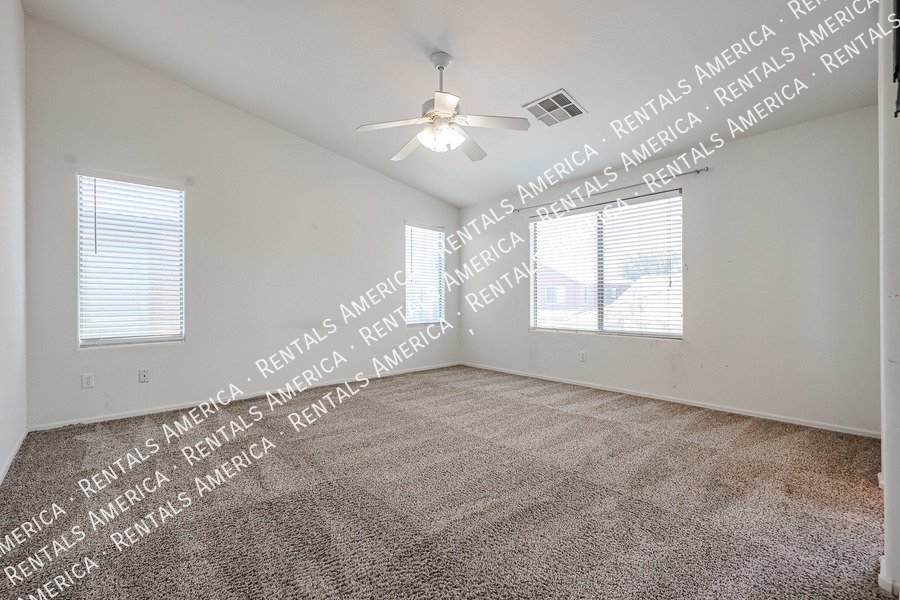 5 bedroom, 3 bathroom home ready for move in! Large open spaces on the first floor for comfortable living spaces. Spacious Master bedroom and bathroom on the second floor. Community is filled with playgrounds, walking trails. Close to schools, shopping and dining. Ideally located. Pets allowed, looking for small breeds.
