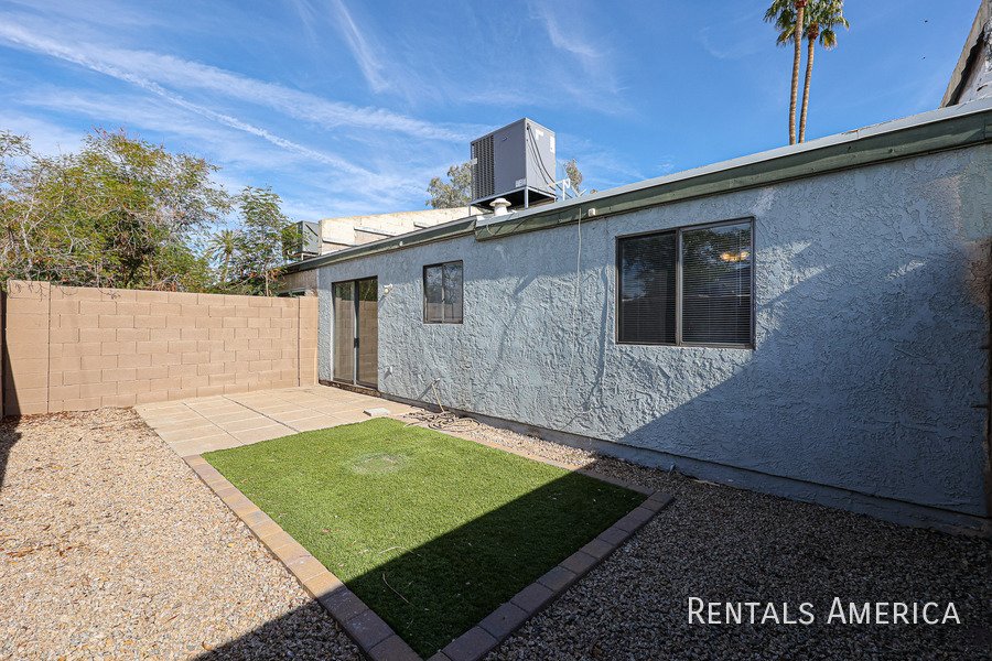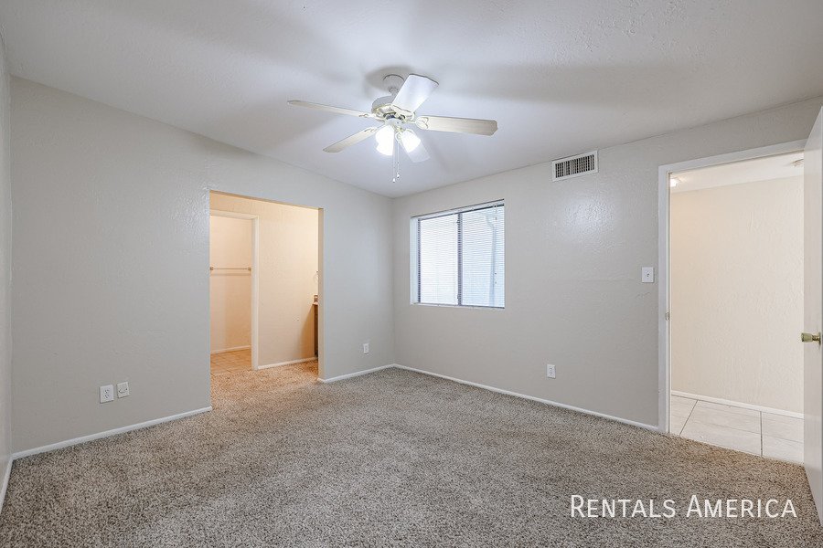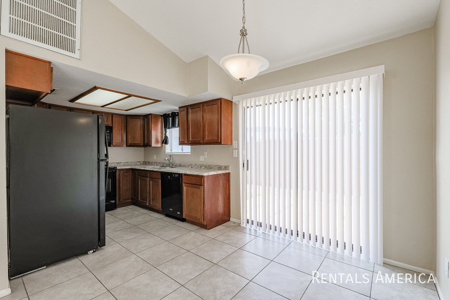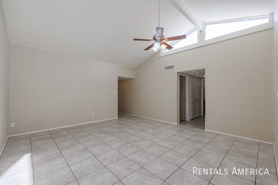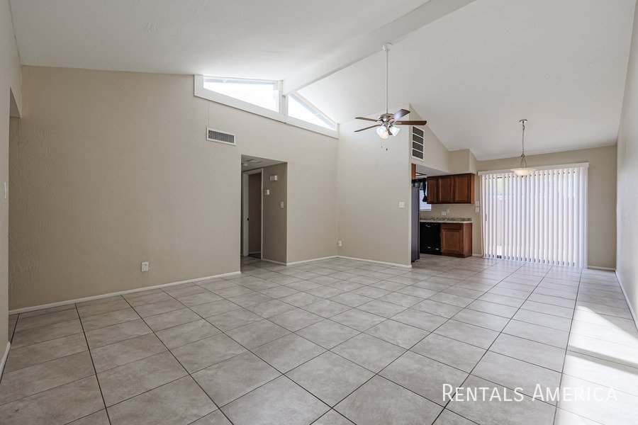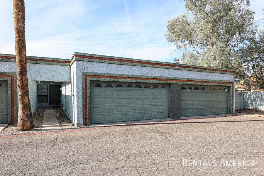 Secluded home with attached garage. Walking distance to Glendale High School. This townhouse has an open floorplan with vaulted ceilings that provide lots of natural light in all livable areas. Lighted fans in living room & all bedrooms. Back patio has gold decorative rock & green turf edged in pavers. Kitchen features black refrigerator, dishwasher & stove with built-in microwave. Master suite includes large walk-in closet and private tub/toilet room. Oversized tile in living, dining & kitchen and chocolate shag carpeting in all bedrooms. Laundry closet with washer & dryer included. Beautiful New Bathtub & Tile Surround in Primary Bathroom. 2-Car Garage. Water Included. Community Pool.