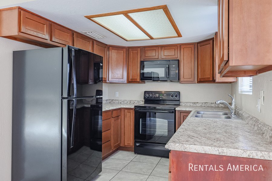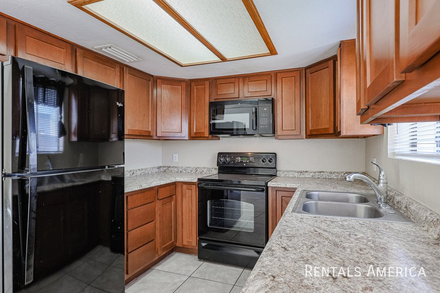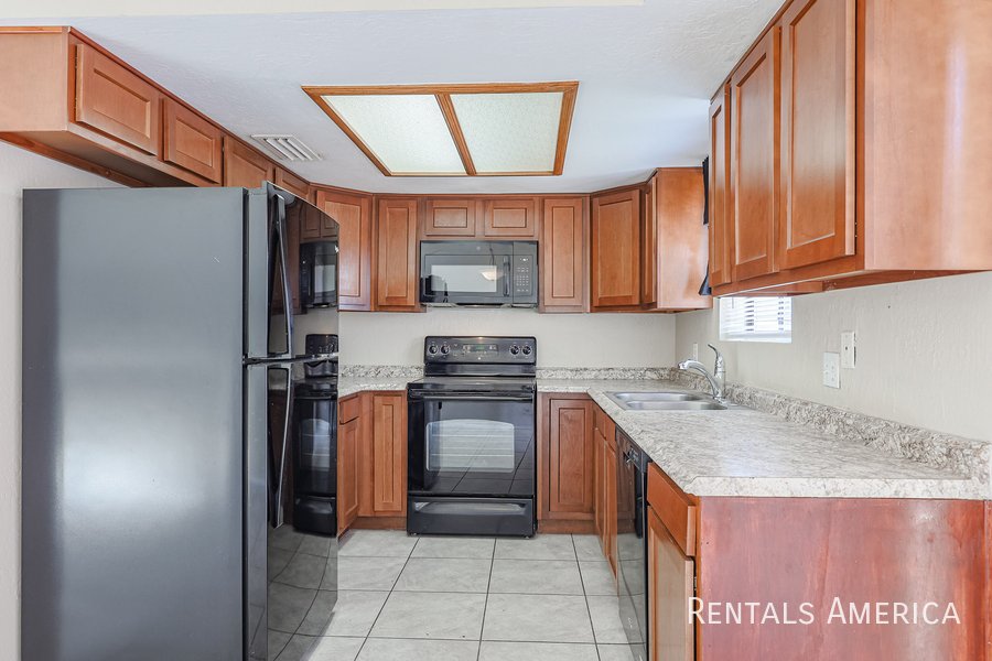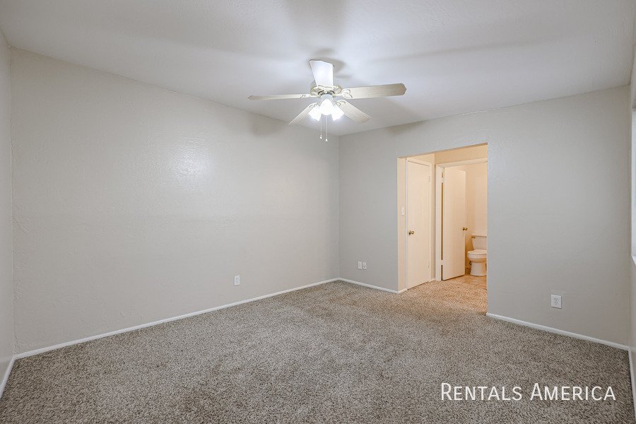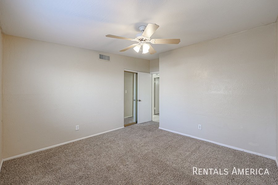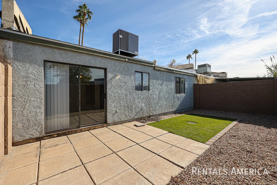 Secluded home with attached garage. Walking distance to Glendale High School. This townhouse has an open floorplan with vaulted ceilings that provide lots of natural light in all livable areas. Lighted fans in living room & all bedrooms. Back patio has gold decorative rock & green turf edged in pavers. Kitchen features black refrigerator, dishwasher & stove with built-in microwave. Master suite includes large walk-in closet and private tub/toilet room. Oversized tile in living, dining & kitchen and chocolate shag carpeting in all bedrooms. Laundry closet with washer & dryer included. Beautiful New Bathtub & Tile Surround in Primary Bathroom. 2-Car Garage. Water Included. Community Pool.