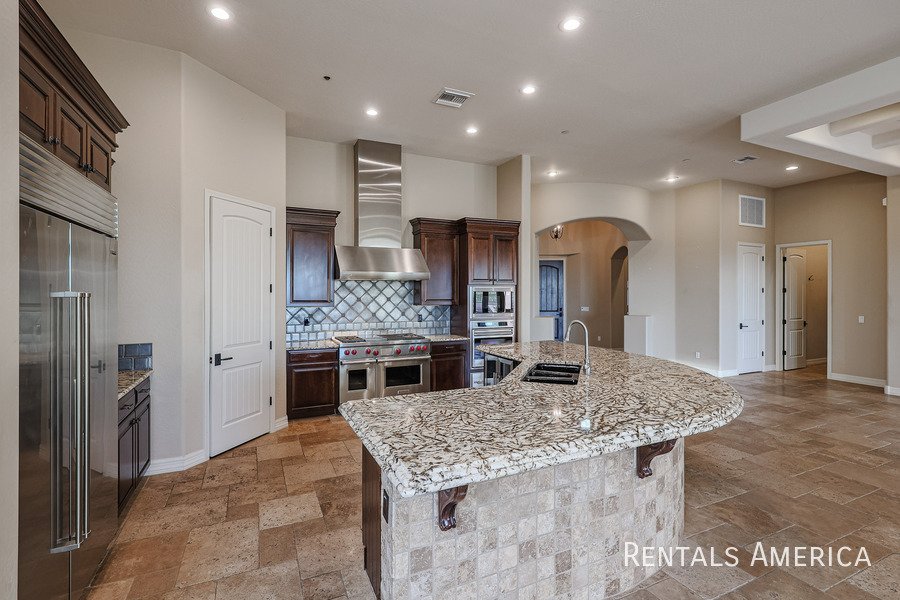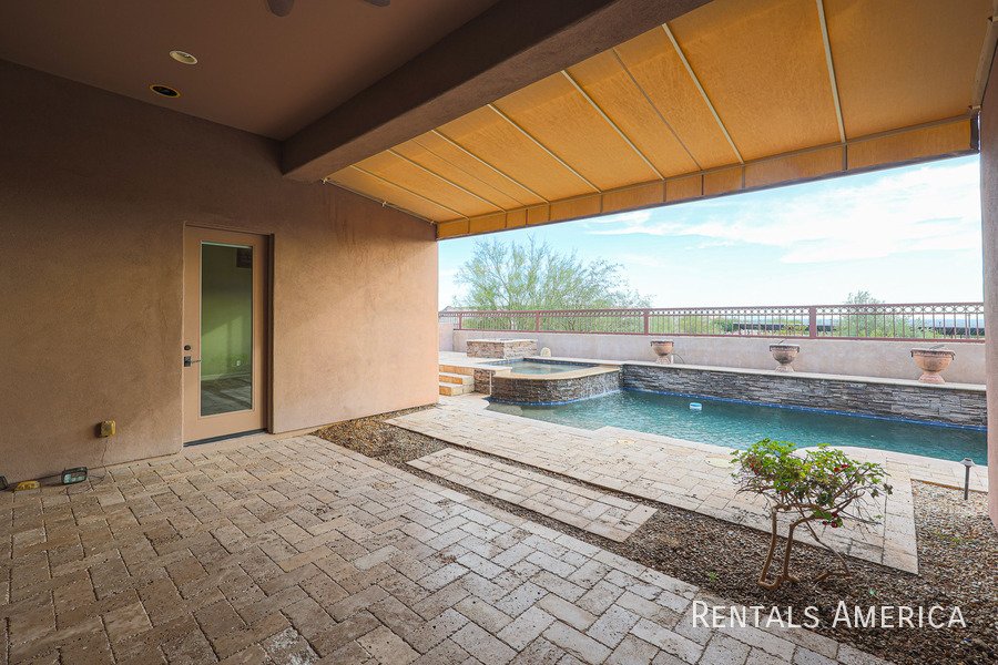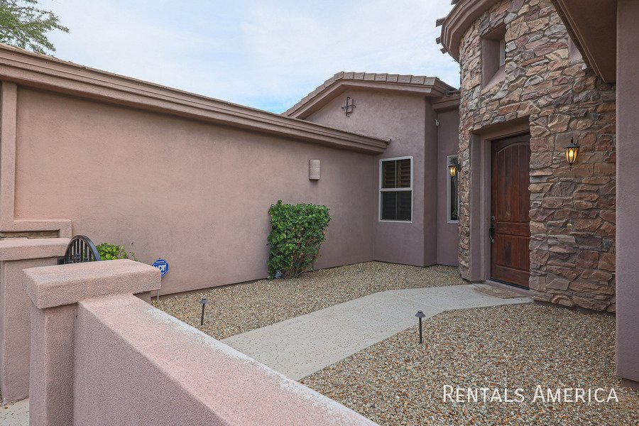 Move-In Special! Half off first full month's rent if lease executed by 1/15/2025! Scottsdale luxury home at its finest available! Gated community of 20 homes, same builder, at top notch location. Minutes to Mayo Clinic Scottsdale, excellent school systems, parks, shopping, & restaurants! This single story, 3 bedrooms, plus Office/Den, 2.5 bathrooms is a gently lived in home with desired upgrades. Italian travertine flooring, new carpet in bedrooms, & new paint. Expansive Chefs kitchen with Sub-Zero & Wolf appliances, granite counters & spacious cabinetry. Split layout, oversized laundry room, and 3-car garage. Relax in the vibrant pool or jacuzzi overlooking mountain-city views. Total replacement of pool system: New motherboard, Filter, Gas heater & Pool valves. Flexible lease length terms may be considered with an approved application (monthly rate may be subject to change). Sorry no pets. Tour this gorgeous home & apply today!